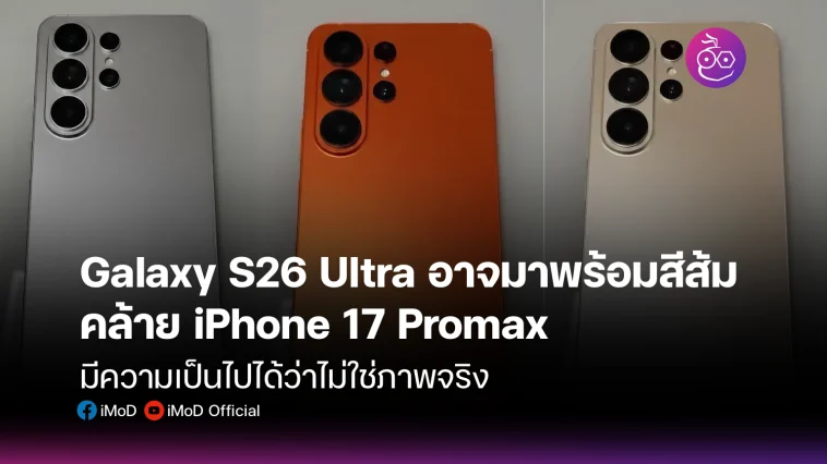 พบภาพเครื่องจำลองของ Samsung Galaxy S26 Ultra ที่เปิดเผยภาพในสีส้ม ซึ่งคล้ายคลึงกับสี Cosmic Orange ของ iPhone 17 Series