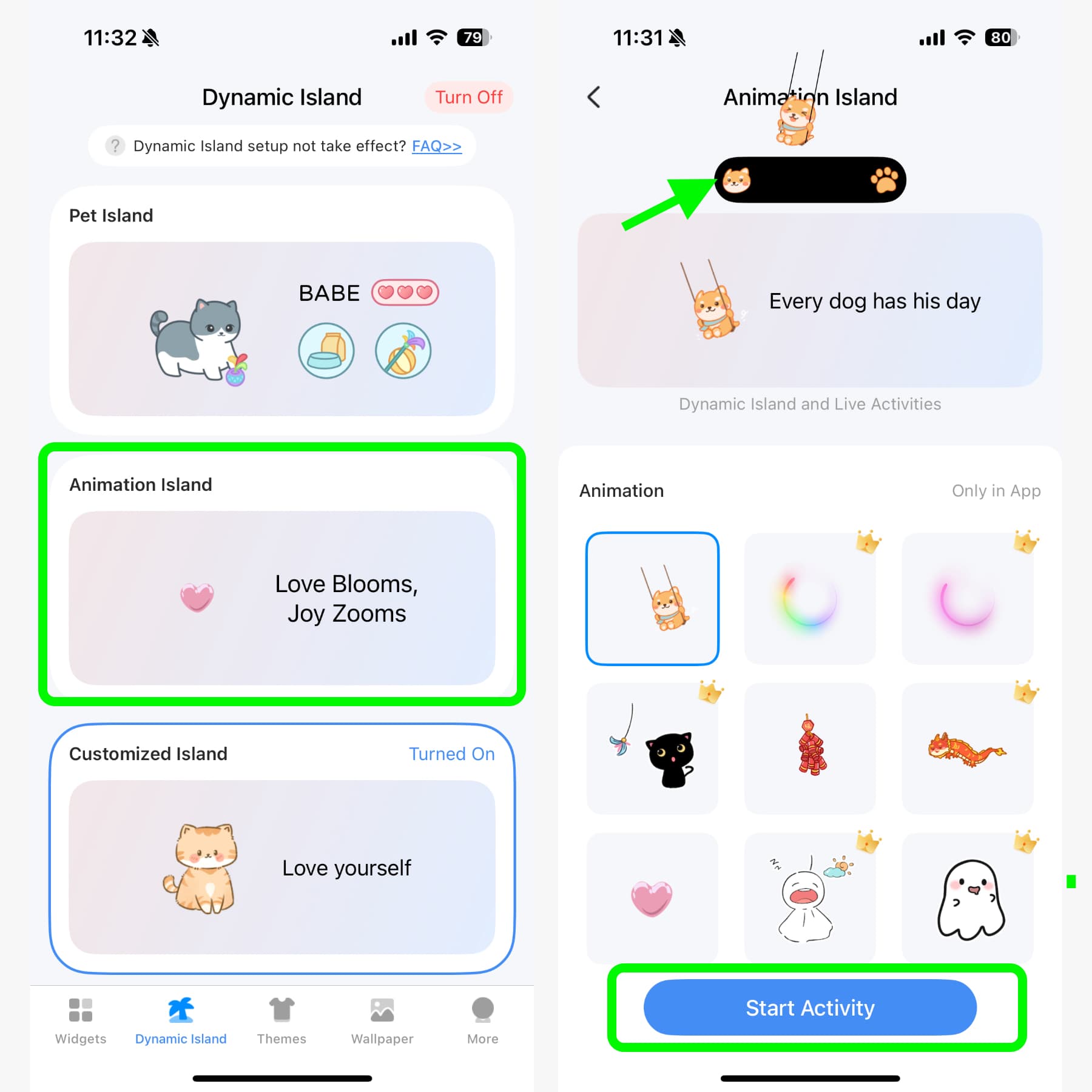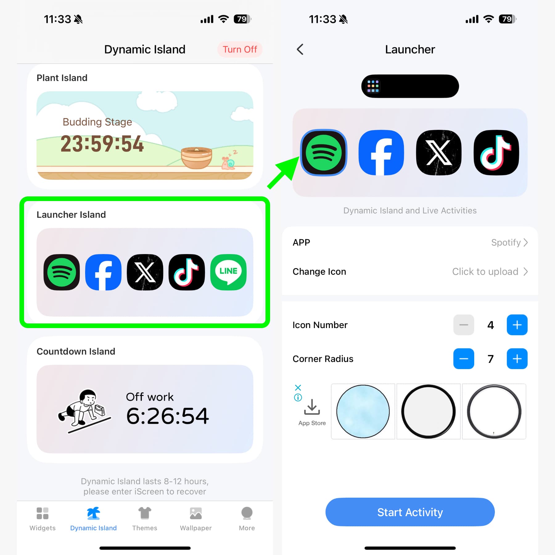 เมื่อเลือกตัวที่ชอบได้แล้ว ให้กดตรงคำว่า “Start Activity” เพื่อให้น้องขึ้นไปอยู่บน Dynamic Island