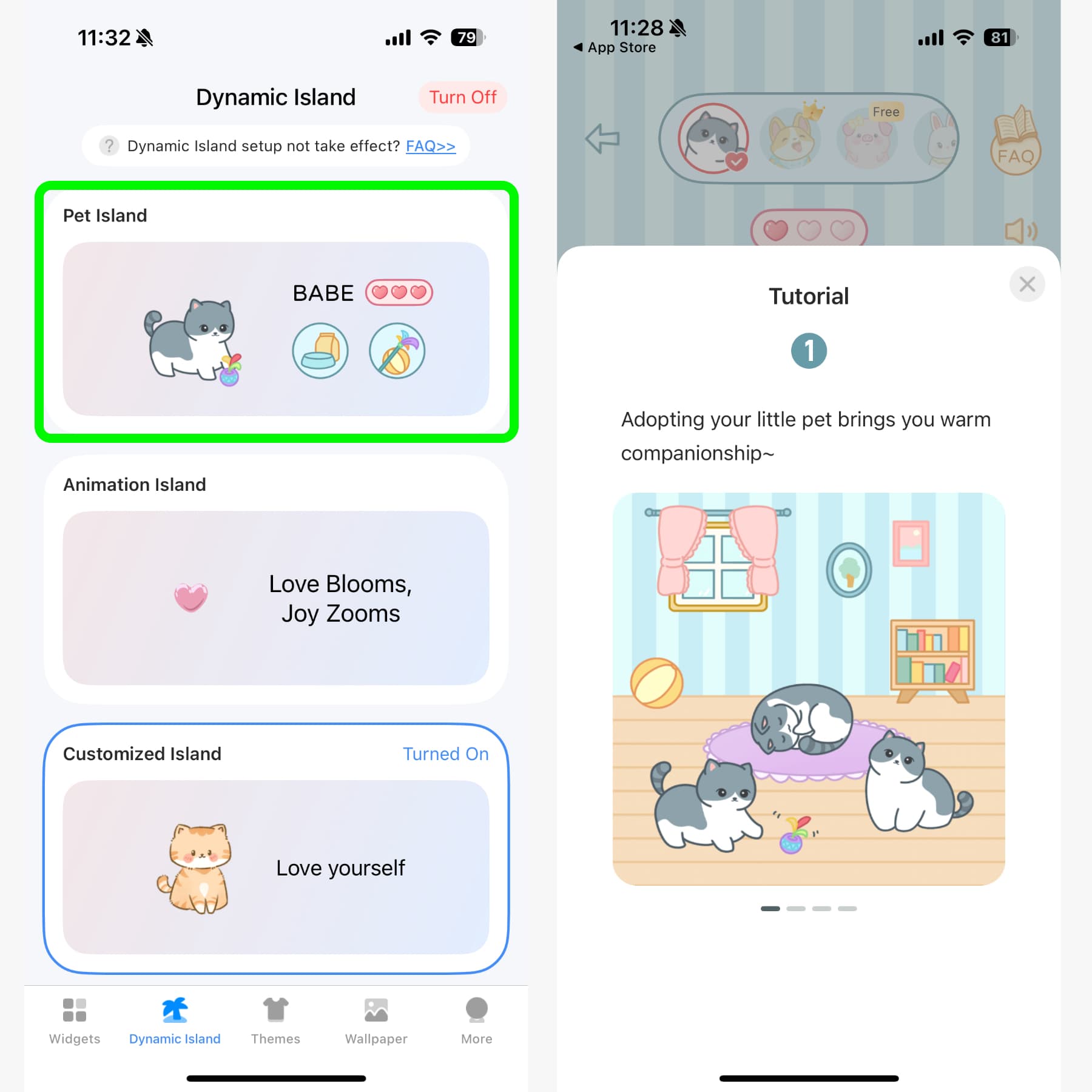 อันแรกจะเป็น Pet Island : เลี้ยงสัตว์บน Dynamic Island โดยเราสามารถตั้งชื่อให้น้อง คอยให้อาหารน้อง เล่นกับน้อง เพื่อให้น้องอารมณ์ดี