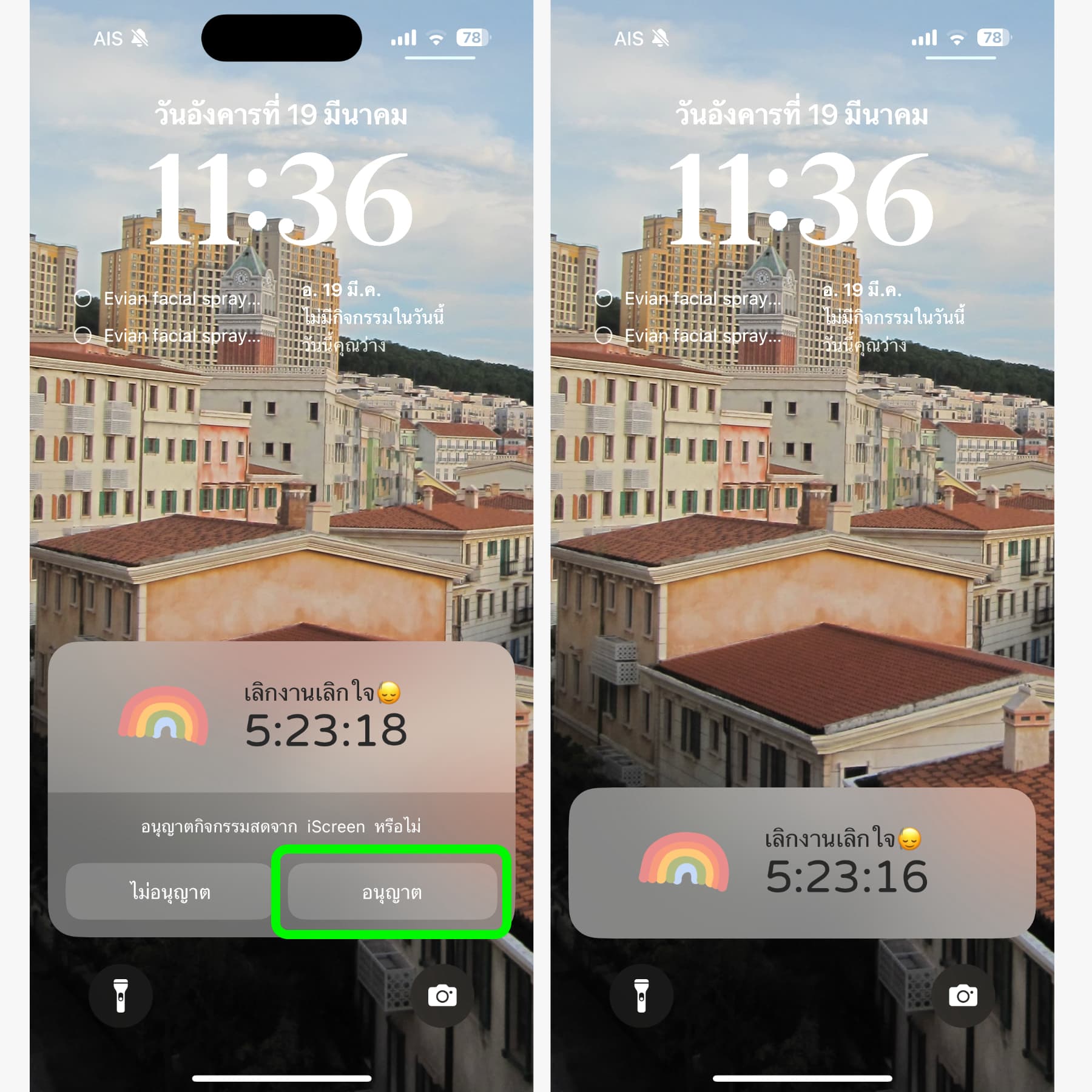 นอกจาก Dynamic Island แล้ว แอปนี้ยังทำงานในบริเวณ Live Activities ที่หน้าจอล็อคด้วยนะ ให้กดอนุญาตเพื่อให้แอปทำงานบนหน้าจอล็อค
