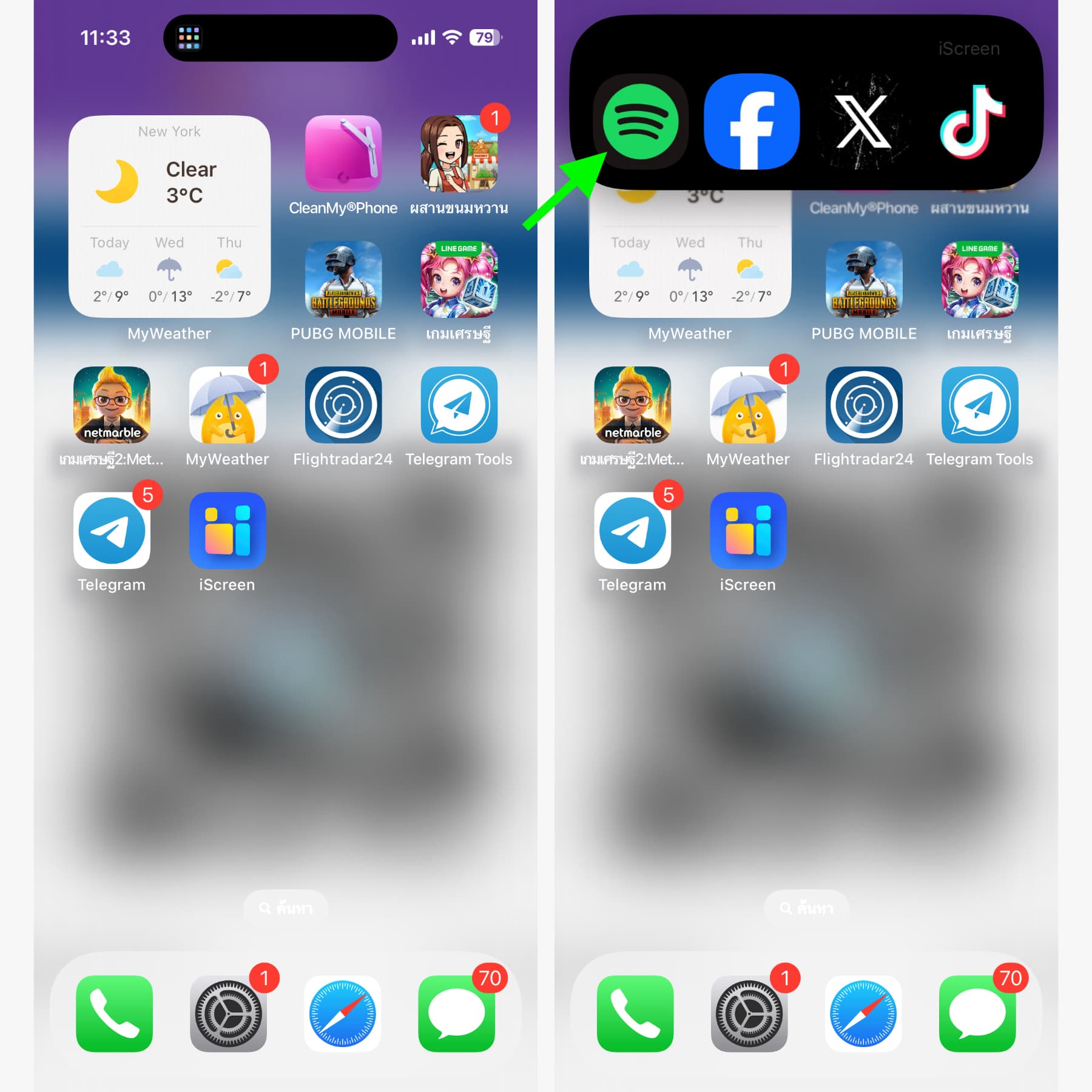 เวลาจะใช้งานก็ให้แตะที่ Dynamic Island แล้วก็แตะที่ไอค่อนแอปได้เลย