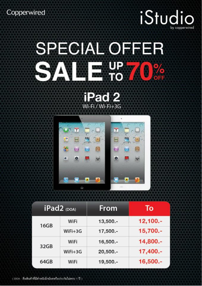 สำหรับราคาของ iPad 2 ไม่ค่อยน่าเร้าใจเหมือน iPhone เท่าไหร่ครับ เฉลี่ยจะอยู่ประมาณ 10-20% ไม่เกินจากนี้ครับ โดย iPad 2 ทั้ง Wifi และ Wifi +3G จะเป็ยนตัว DOA หรือสินค้าที่มีระยะประกันไม่ถึง 1 ปีครับ