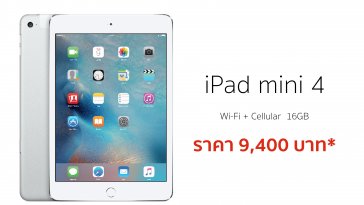 - iPad Air 2 Wi-Fi + Cellular ความจุ 128 GB ราคา 25,900 บาท (เฉพาะหน้าร้าน)