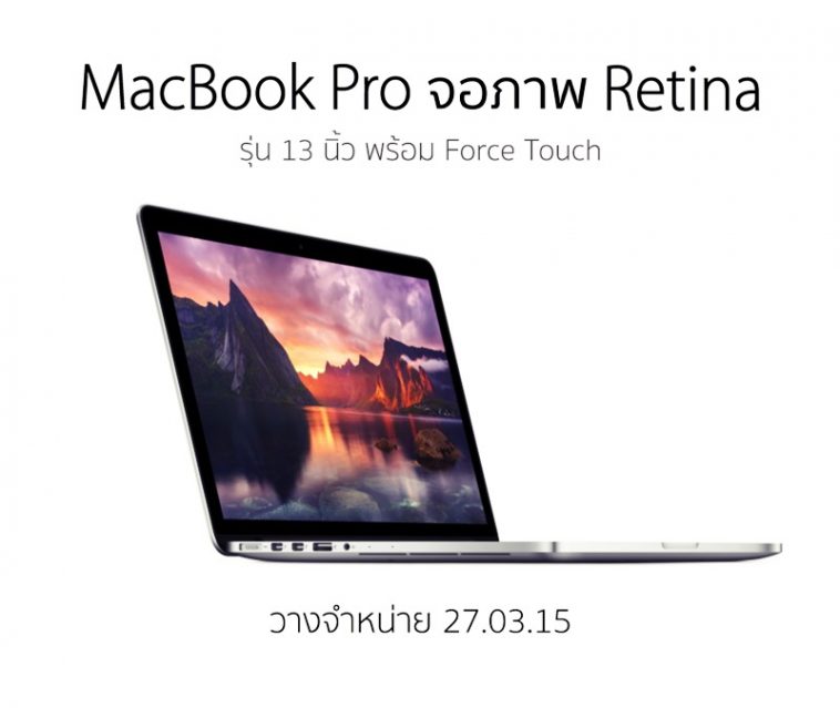 จากข่าว Liveblog – งาน Spring Forward เปิดตัว MacBook Retina, Apple Watch วันที่ 9 ที่ผ่านมานี้ทาง Apple ได้เปิดตัวผลิตภัณฑ์ใหม่ในตระกูล MacBook และในส่วนของ MacBook Pro 13″ ก็ได้มีรุ่นใหม่มาวางจำหน่ายแทนรุ่นเก่า (ราคาเดิม) ซึ่งในวันนี้เอง iStudio ในส่วนของประเทศไทยก็ได้ประกาศอย่างเป็นทางการแล้ว