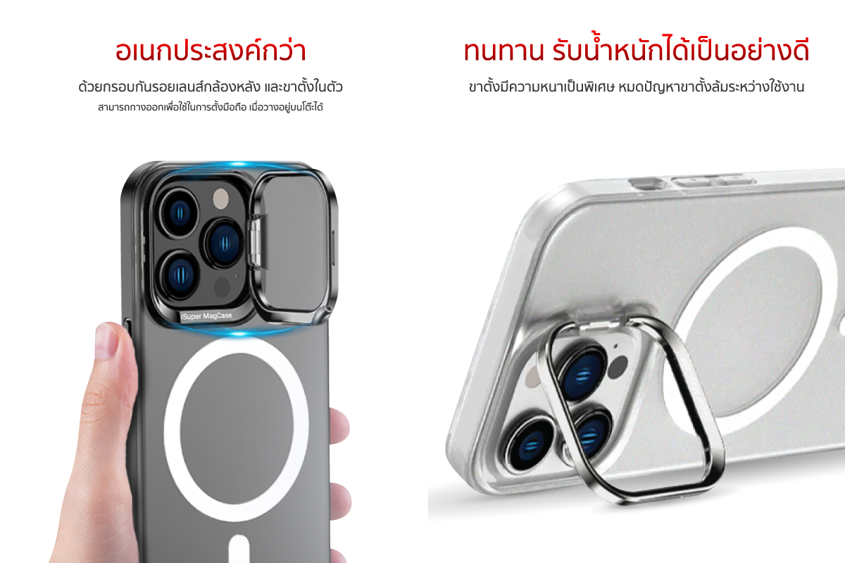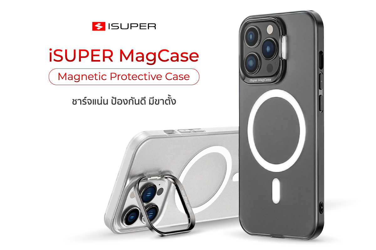 iSUPER เปิดตัว MagCase เป็นเคสชาร์จแม่เหล็กที่รองรับการชาร์จ MagSafe สำหรับ iPhone นอกจากนี้ก็ยังมีกรอบกันรอยเลนส์กล้องหลังและขาตั้งในตัวที่สามารถกางออกเอาไว้ตั้ง iPhone ดูคอนเทนต์ต่าง ๆ ได้ เรียกได้ว่ารองรับการใช้งานแบบครอบคลุมและมีความอเนกประสงค์ต่อการใช้งานมาก ๆ