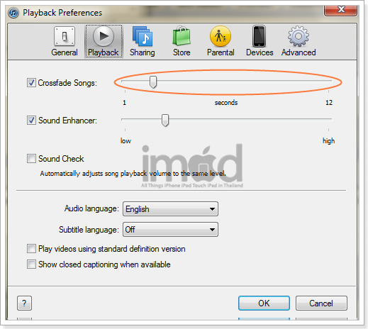 ติ๊กที่ Crossfade Songs ปรับเวลาให้ช้า เร็ว ตามความต้องการ ผมแนะนำประมาณ 4-7 วินาที