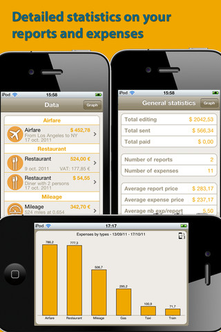 - send by email your expense report in PDF file or EXCEL spreadsheet