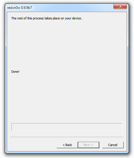 เข้า dfu mode เสร็จก็ปล่อยให้ redsn0w 0.9.9b7 ทำหน้าที่ของมัน