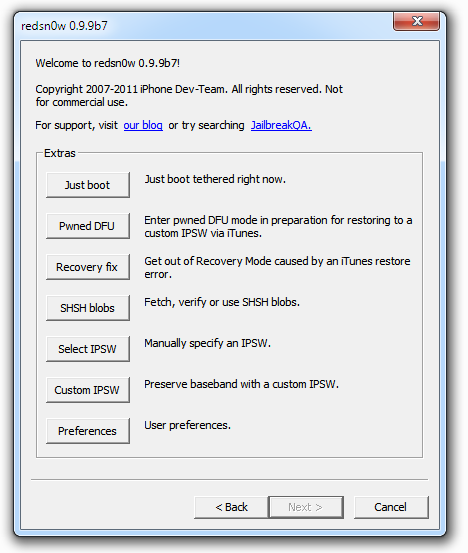 เปิด redsn0w 0.9.9b7 ขึ้นมา แล้วกดที่ Extras