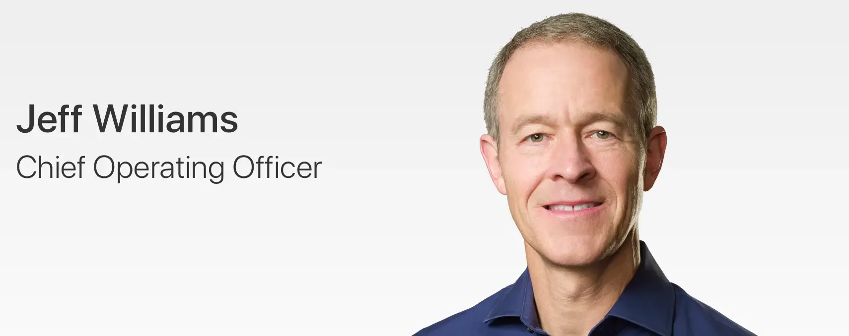 Jeff Williams เข้ารับตำแหน่ง COO (ประธานเจ้าหน้าที่ฝ่ายปฏิบัติการ) ของ Apple ในปี 2015 โดยดูแลเรื่องฝ่ายปฏิบัติงานทั่วโลกทั้งหมดของ Apple รวมถึงด้านบริการ และสนับสนุนลูกค้าด้วย