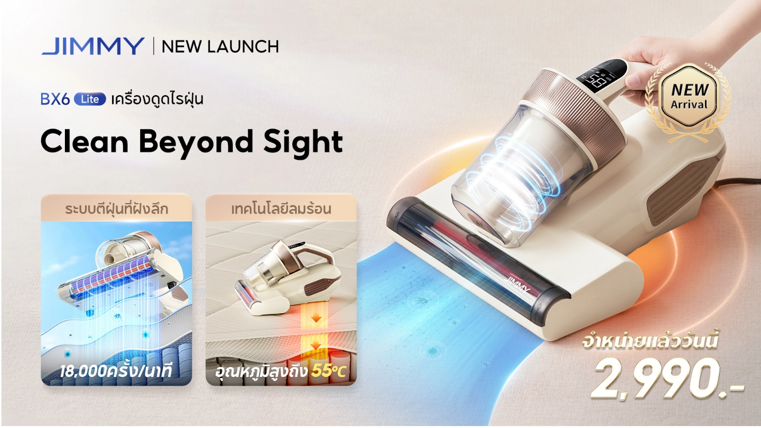 JIMMY ในฐานะผู้นำด้านอุปกรณ์กำจัดไรฝุ่น ได้ประกาศเปิดตัว JIMMY BX6 Lite รุ่นล่าสุดที่ราคาย่อมเยาว์ และโดดเด่นด้วยนวัตกรรมกำจัดไรฝุ่นอย่างมืออาชีพและครอบคลุมให้กับผู้ที่เป็นภูมิแพ้ โดยประเทศไทยพบว่ามีผู้ป่วยที่มีอาการแพ้ “ไรฝุ่น” เป็นอันดับหนึ่งถึง 70- 80%