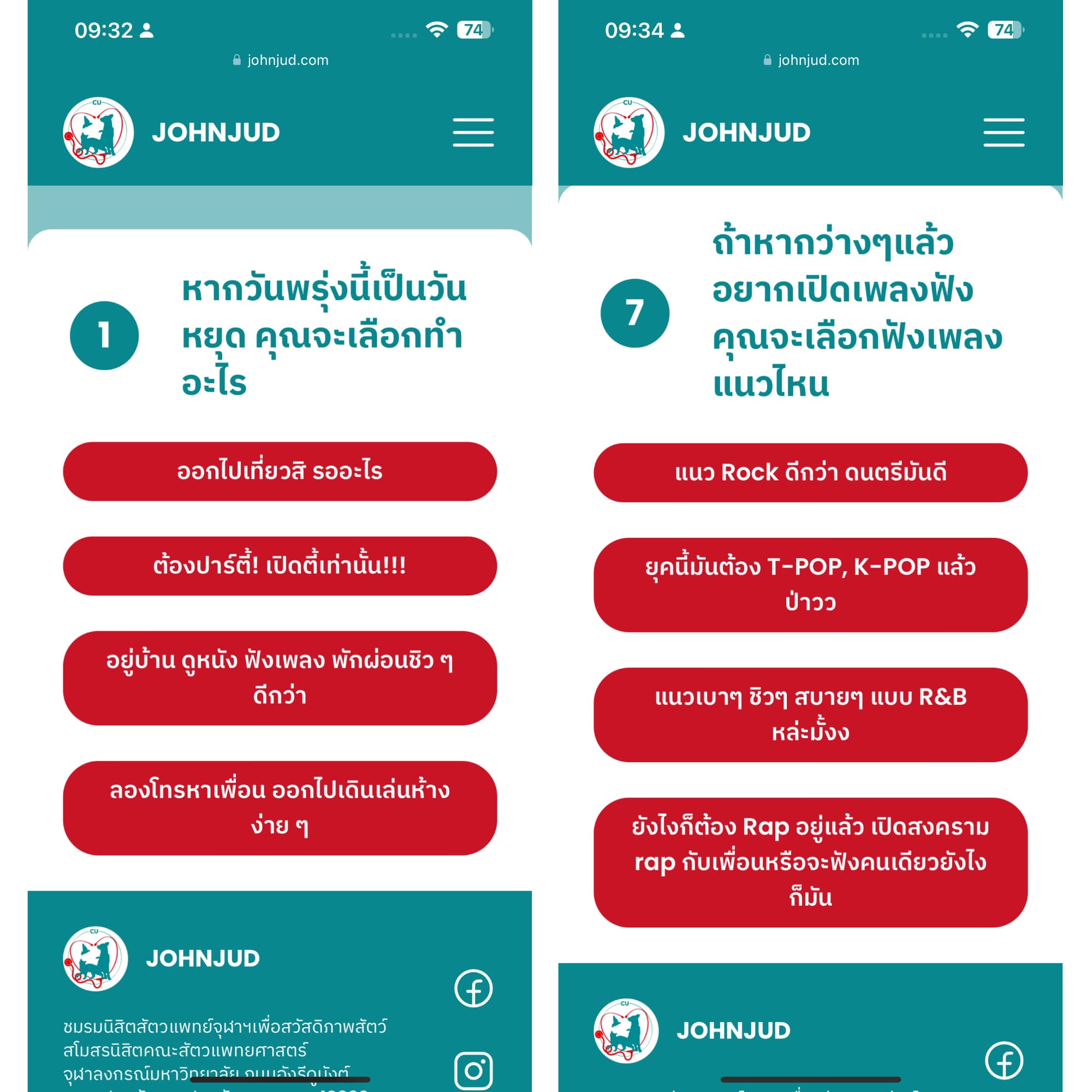 แล้วตัวเว็บก็จะถามคำถามต่าง ๆ ที่เกี่ยวกับนิสัยหรือความชอบของเราเช่น หากวันพรุ่งนี้เป็นวันหยุด คุณจะเลือกทำอะไร, ถ้าหากว่าง ๆ แล้ว อยากเปิดเพลงฟัง คุณจะเลือกฟังเพลงแนวไหน