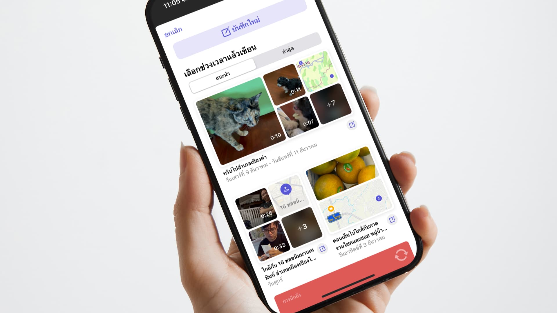 แตะที่เครื่องหมาย “+” เพื่อเริ่มเขียนบันทึก เราสามารถเลือกเขียนบันทึกจากคำแนะนำของระบบ หรือจะเลือกจากเหตุการณ์ล่าสุดก็ได้