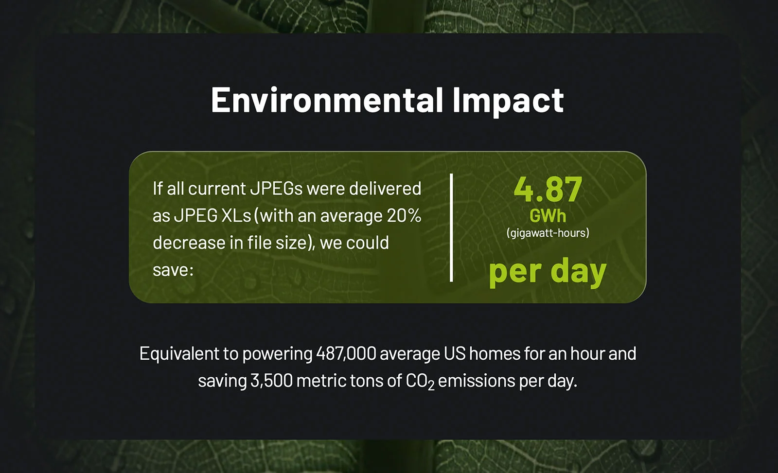 *JPEG-XL ลดขนาดไฟล์ได้ 20% ลดการใช้พลังงาน 4.87 GWh ต่อวัน ลดการปล่อยคาร์บอนได้ 3,500 ตันต่อวันได้ด้วย!