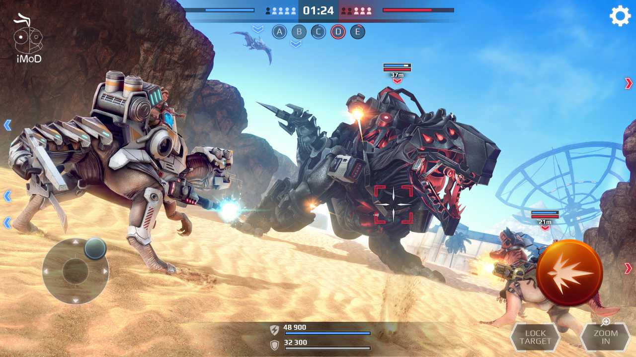เกมมือถือยิงต่อสู้แบบ Multiplayer ออนไลน์ ที่จะพาคุณเข้าไปสู่สมรภูมิรบของไดโนเสาร์เหล็กติดอาวุธในยุคหลังวันสิ้นโลก โดยผู้เล่นจะต้องเข้ามาร่วมจัดทีมรบไดโนเสาร์กับเพื่อนๆ อีก 4 คน แบ่งฝั่งเข้าต่อสู้ประจัญบานกันในสนามรบแบบ 5v5 ออนไลน์เรียลไทม์