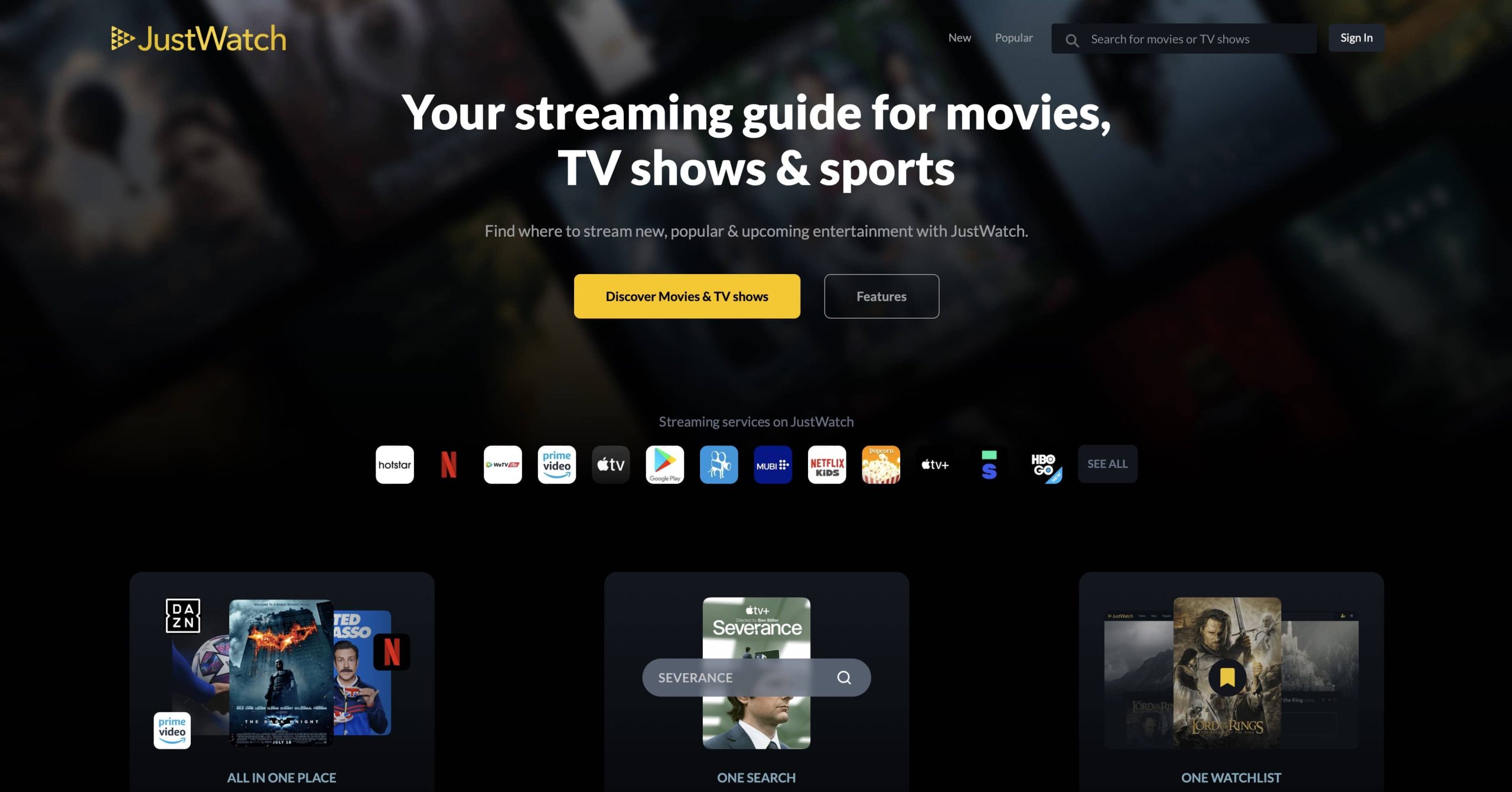 Justwatch เว็บหาหนังว่าดูในแพลตฟอร์มไหนได้บ้าง