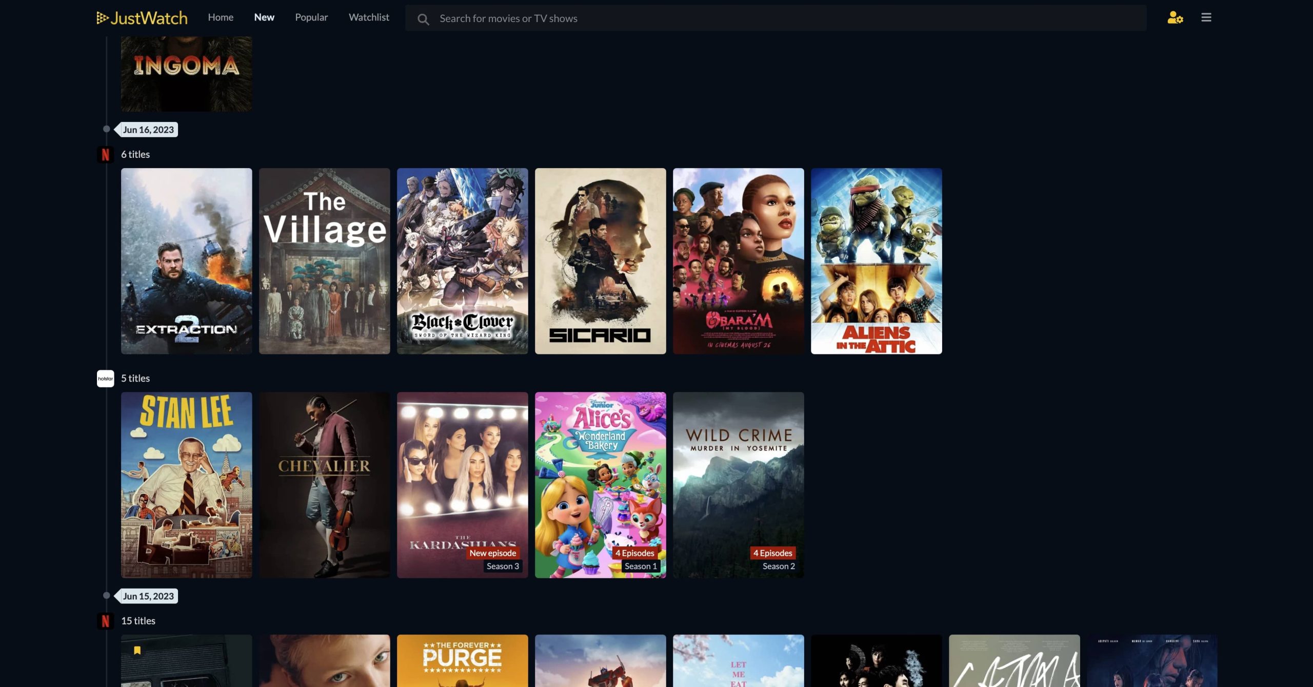 และถ้าเรากดปุ่ม “New” ด้านบนจะพามาหน้านี้ หน้านี้จะเป็นหน้าที่แสดงหนังรายวัน สัปดาห์ และเดือน ว่าตอนนี้มีเรื่องไหนออนแอร์ไปแล้วหรือกำลังจะออนแอร์แล้วบ้าง และอาทิตย์นี้มากี่ตอน