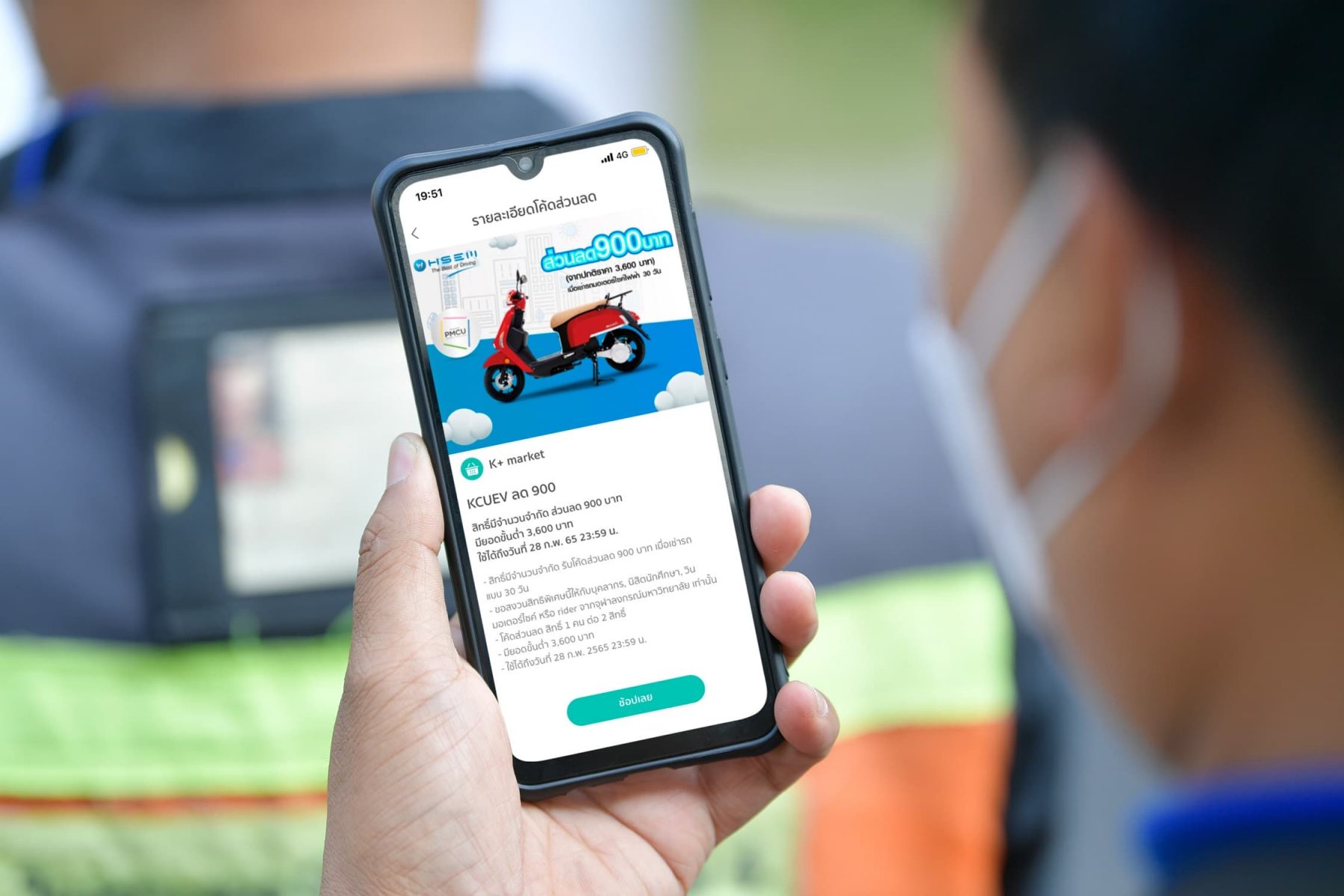 โดยโครงการดังกล่าวของธนาคารกสิกรไทย และพันธมิตร ได้เปิดให้เช่ารถมอเตอร์ไซค์ไฟฟ้า (EV Bike) ราคาประหยัดผ่าน K+ market บนแอป K PLUS เพื่อแบ่งเบาภาระค่าใช้จ่ายของผู้ประกอบอาชีพรับส่งอาหาร (Rider) และเปิดช่องทางสร้างรายได้ใหม่ให้กับกลุ่มคนตัวเล็กที่ได้รับผลกระทบด้านรายได้จากวิกฤตโควิด-19 โดยใส่โค้ด KCUEV ได้รับส่วนลดสูงสุด 900 บาท เมื่อเช่ารถ 30 วัน เหลือเพียงวันละ 90 บาทเท่านั้น ตั้งแต่วันนี้ถึง 28 กุมภาพันธ์ 2565