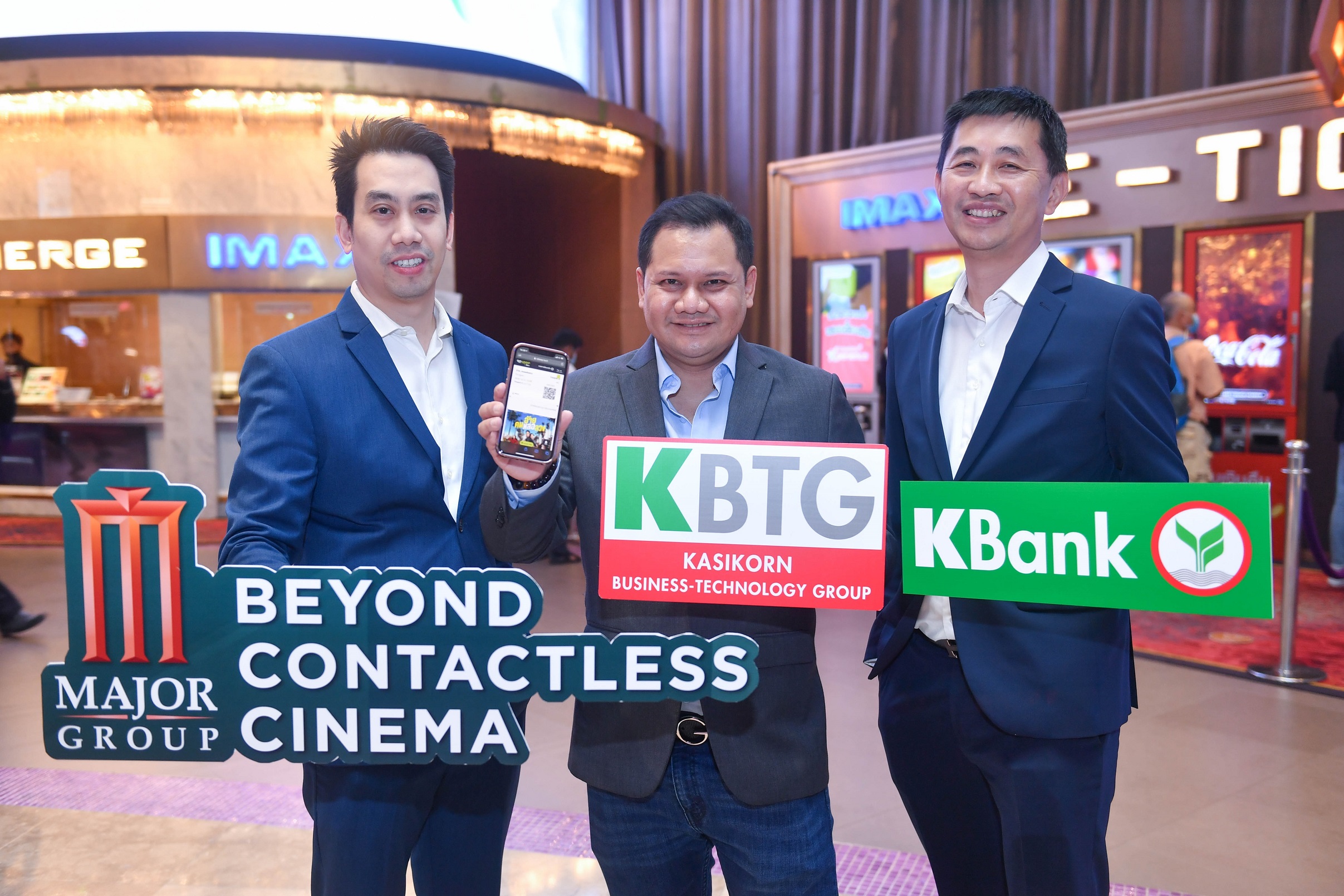 นายเรืองโรจน์ พูนผล ประธาน  กสิกร บิซิเนส-เทคโนโลยี กรุ๊ป (KBTG) เปิดเผยว่า KBTG ร่วมมือกับ บมจ.เมจอร์ ซีนีเพล็กซ์ กรุ้ป ผู้นำด้านการให้บริการโรงภาพยนตร์ ในการนำเทคโนโลยีไร้สัมผัส (Contactless Technology) ผ่านตู้จำหน่ายตั๋วหนังอัตโนมัติ E-Ticket ต่อยอดประสบการณ์การเข้าชมภาพยนตร์และอำนวยความสะดวกให้กับลูกค้า เพื่อตอบโจทย์ไลฟ์สไตล์ยุคใหม่เเละเสริมสร้างประสบการณ์ของลูกค้าด้วยเทคโนโลยีจากธนาคารกสิกรไทย และ KBTG โดยลูกค้าสามารถเลือกชมภาพยนตร์ จำนวนที่นั่ง ชำระเงิน รับตั๋วชมภาพยนตร์ผ่านระบบของตู้จำหน่ายตั๋วหนังอัตโนมัติ ซึ่งจะแสดง QR Code เพื่อให้ลูกค้าใช้สมาร์ทโฟนสแกนรับตั๋วแทนการใช้กระดาษ (Paperless) เพื่อเข้าชมภาพยนตร์