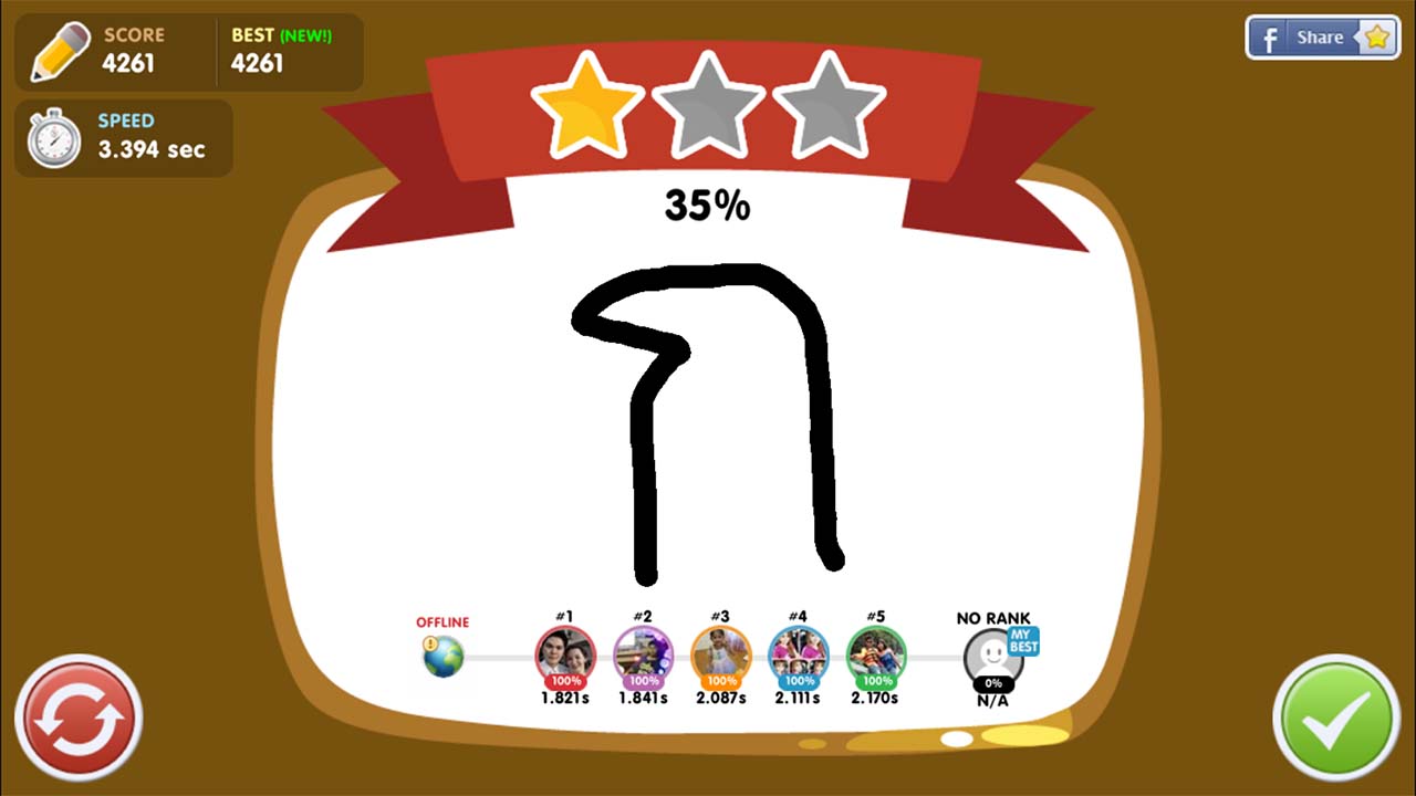 - มีการจัดอันดับคะแนนการเขียนตัวอักษรไทยสวยงามผ่าน Scoreboard กับเพื่อนใน Facebook ช่วยให้เกมสนุกยิ่งขึ้น