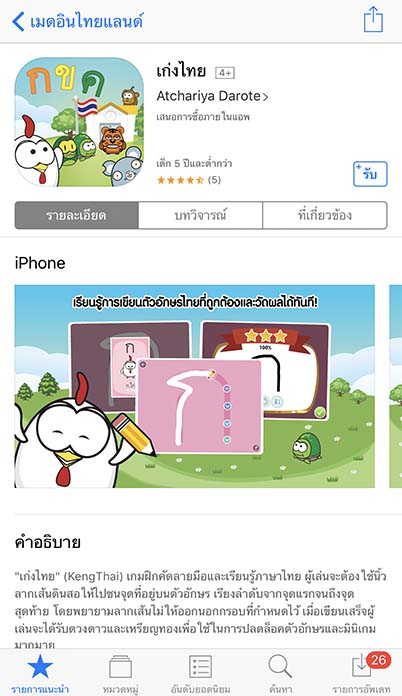 สามารถดาวน์โหลดแอป KengThai – เก่งไทย ได้ฟรีที่ App Store
