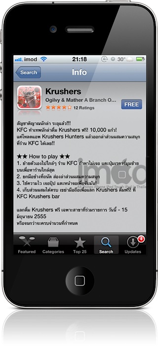ดาวน์โหลดได้ที่ App Store โดยค้นหาด้วยคำว่า Krushers Hunters รายละเอียดเพิ่มเติมดูได้ที่ www.krushershunters.com และเล่นได้ถึง 15 มิ.ย. 2555 หรือจนกว่าของจะหมดนะครับ หากใครอยากเล่นสามารถเช็คสาขาที่ร่วมรายการได้ที่นี่