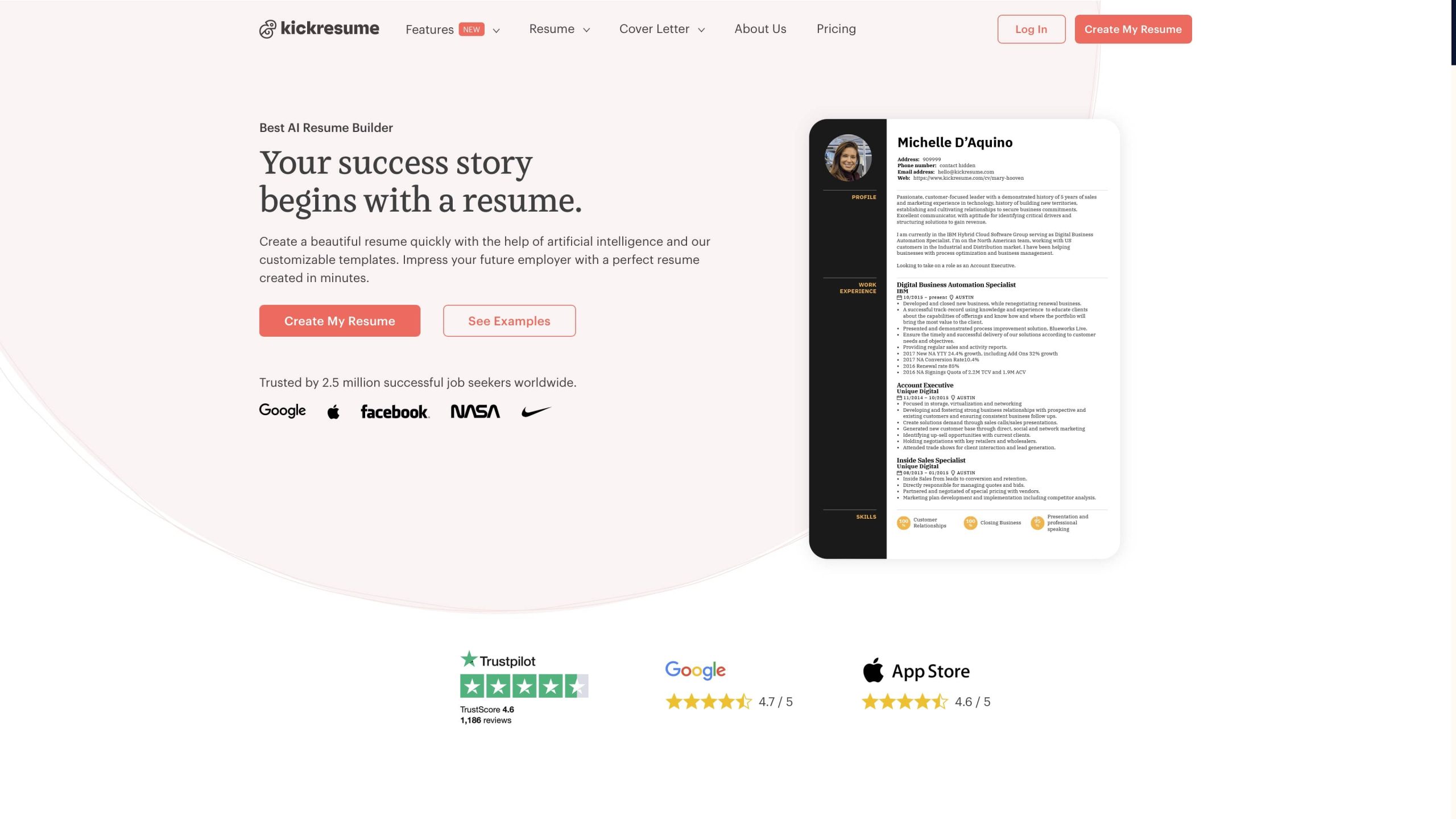 ใครที่กำลังมองหาเว็บทำเรซูเม่ ที่รวดเร็วและเสร็จภายในไม่กี่นาที ทีมงานมีเว็บ Kickresume เว็บทำเรซูเม่ภาษาอังกฤษภายใน 30 วินาที!