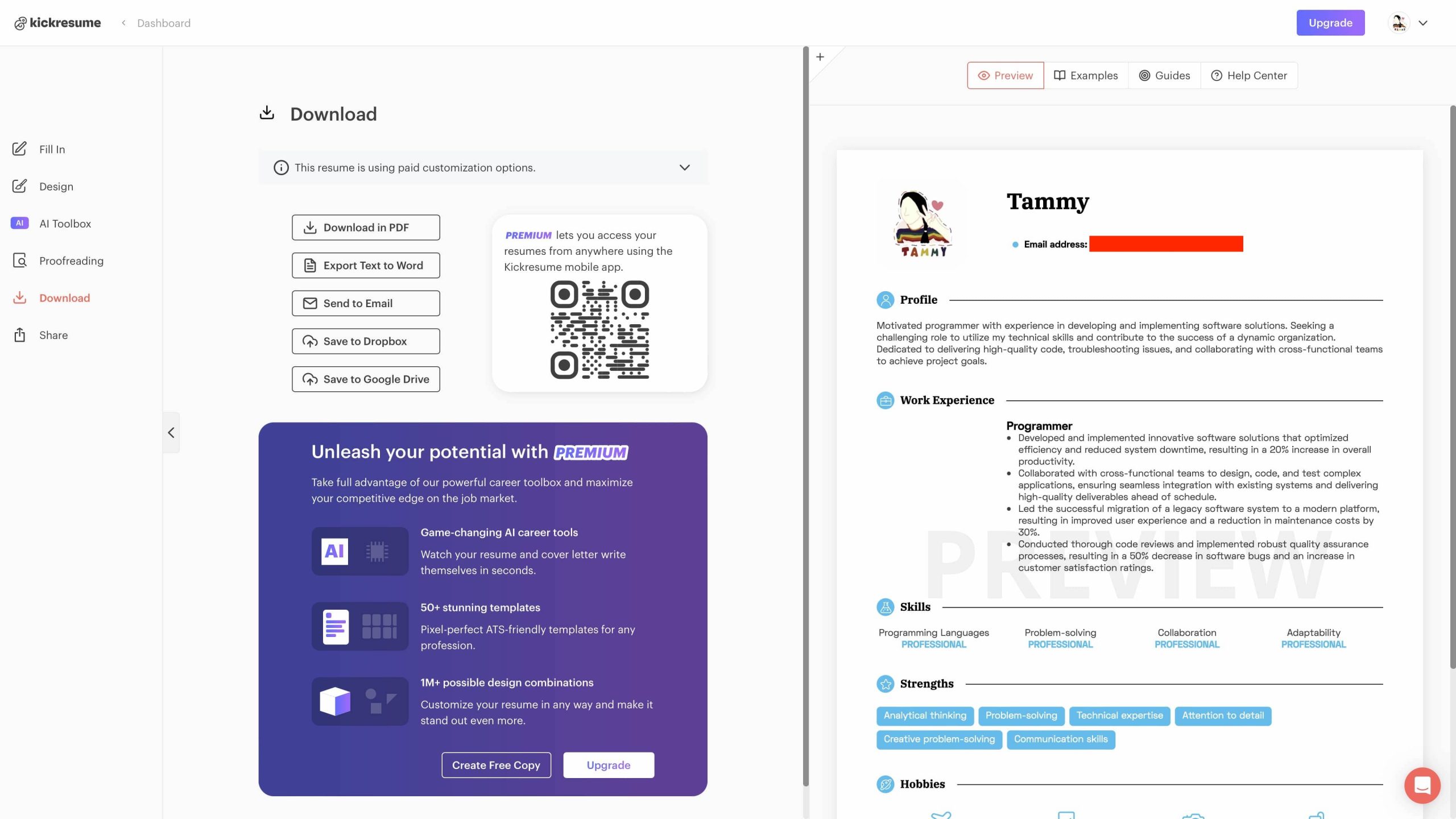 และยังดาวน์โหลดเรซูเม่ออกมาเป็นไฟล์ต่าง ๆ ได้ แต่ถ้าเป็นแบบฟรีจะโหลดได้เฉพาะแบบธรรมดา ส่วนแบบจ่ายเงินจะโหลดได้ทั้งเทมเพลตเลย
