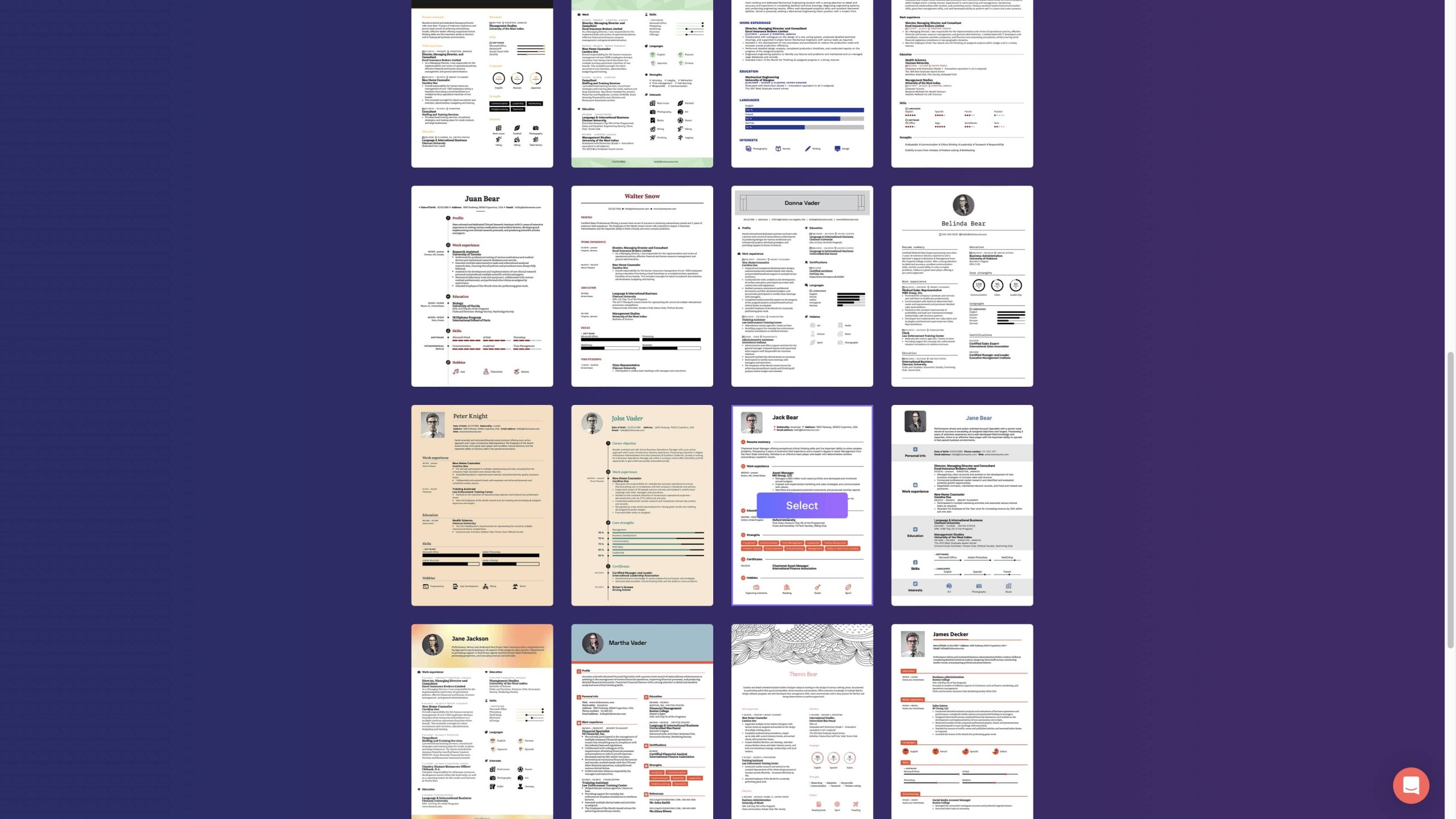 พอเราได้เทมเพลตที่ต้องการแล้ว ให้กด “Select” เพื่อเลือก จากนั้นรอ AI ประมวลผลเรซูเม่ออกมา
