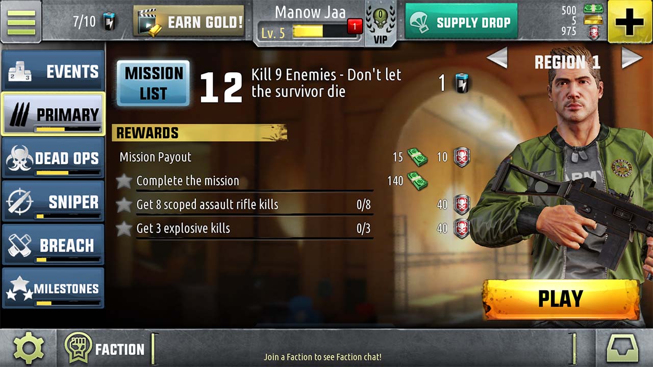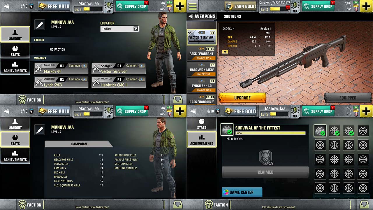- มีโหมด Faction สำหรับเข้าร่วมกลุ่มผู้อยู่รอดและกวาดล้างซอมบี้ ทำอันดับคะแนนให้สูงสุด เพื่อไต่อันดับเป็นที่หนึ่งใน Leaderboard (สามารถสร้างกลุ่ม Faction เองได้)