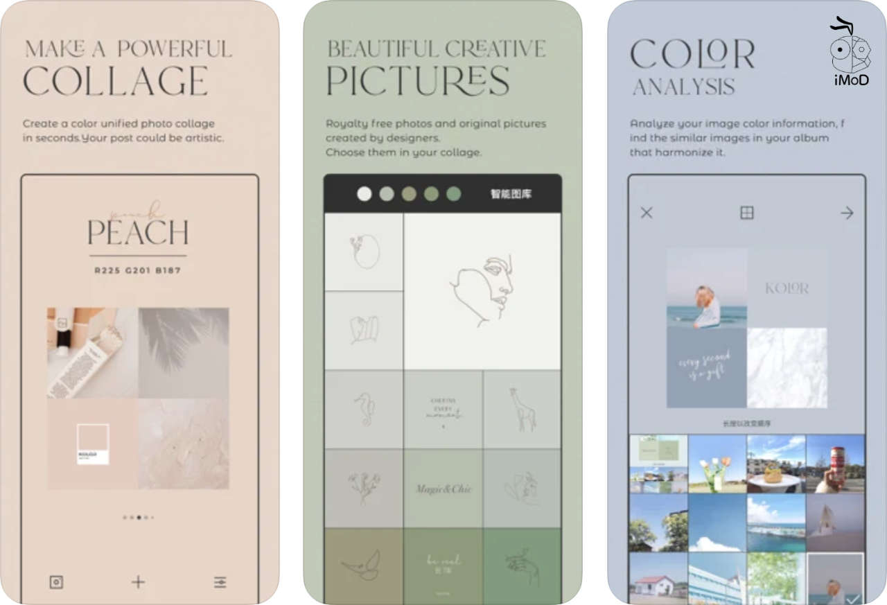 แอปทำรูปภาพคอลลาจ (Collage) หรือแอปรวมรูปภาพในรูปแบบของตาราง 2×2 และ 3×3 ที่ใช้อัลกอริทึมเฉพาะตัวในการวิเคราะห์สีของรูปภาพและเลือกรูปภาพที่มีแนวสีใกล้เคียงกันจากอัลบั้มใน iPhone ของคุณ ออกมาจัดแสดงให้คุณได้เลือกใช้งาน