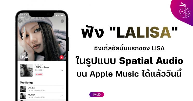 หลังจากโลดแล่นในวงการเคป๊อปในฐานะสมาชิกวงเกิร์ลกรุ๊ประดับโลกอย่าง BLACKPINK มากว่า 5 ปี วันนี้ LISA เมมเบอร์สาวชาวไทยได้เวลาเฉิดฉายในฐานะศิลปินเดี่ยวกับผลงานชิ้นแรกของเธอที่มีชื่อว่า “LALISA” ซิงเกิ้ลอัลบั้มที่มาพร้อมกับเพลงอย่าง “LALISA” และ “MONEY” ที่แฟน ๆ สามารถดื่มด่ำกันได้ลึกซึ้งและเข้าถึงทุกอารมณ์มากกว่าที่เคยในรูปแบบ Spatial Audio ซึ่งฟังได้บน Apple Music ได้แล้ววันนี้