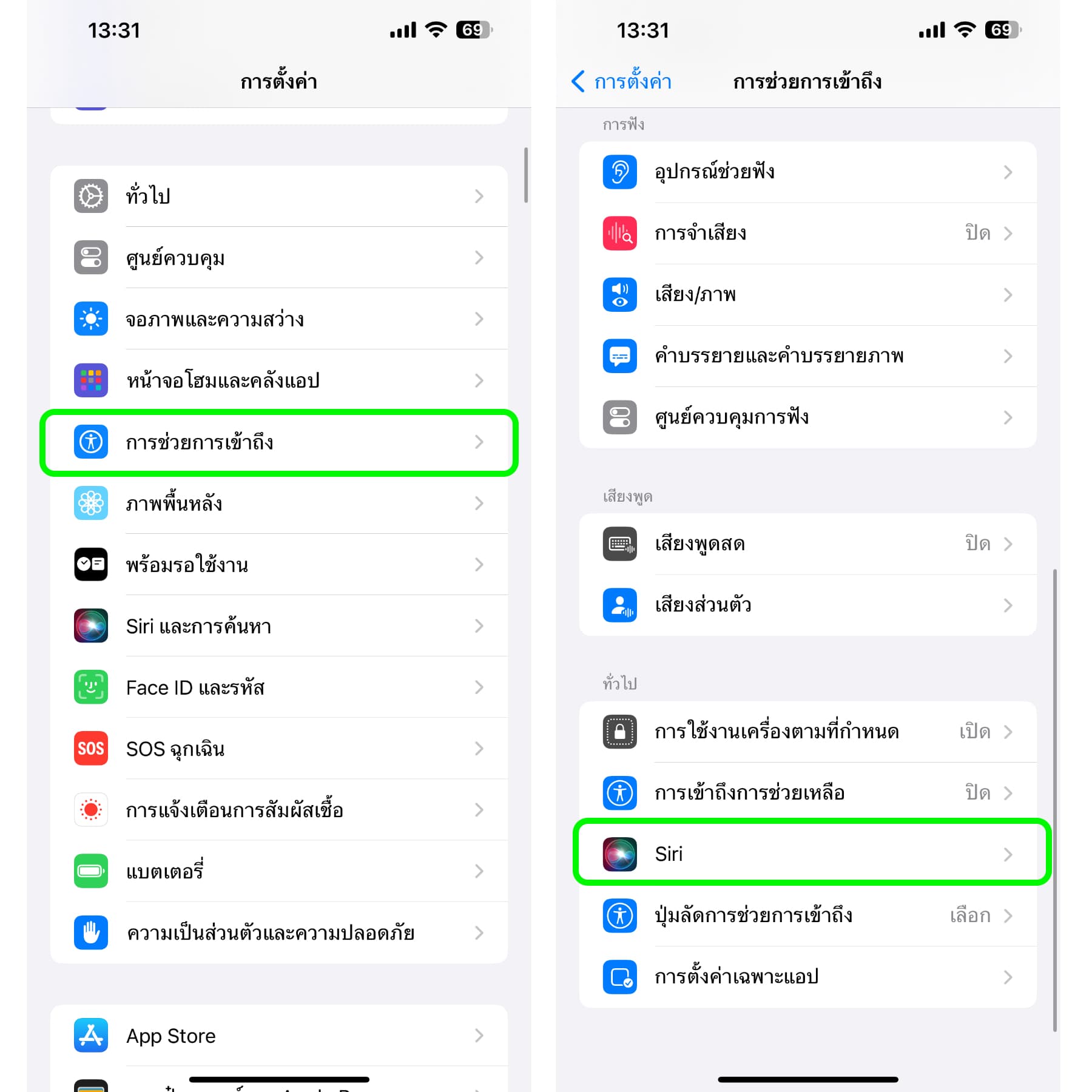 แอปการตั้งค่า > การช่วยการเข้าถึง > Siri > เปิด “พิมพ์โต้ตอบกับ Siri”