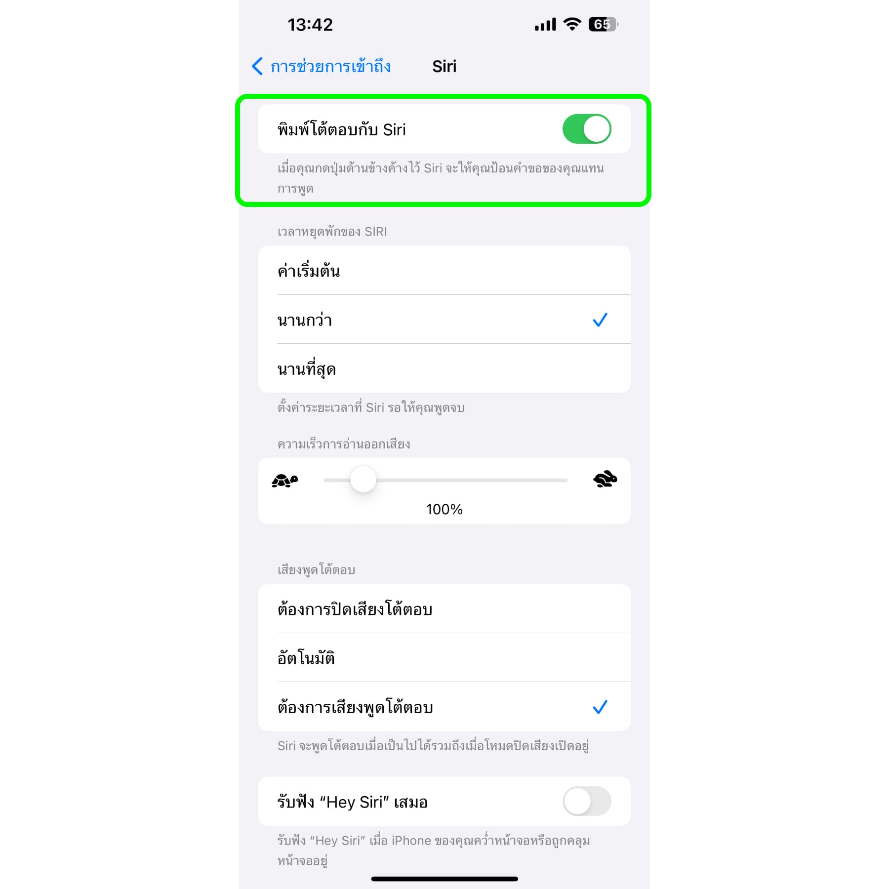 3.เปิด-ปิดการแสดงคำพูดของ Siri