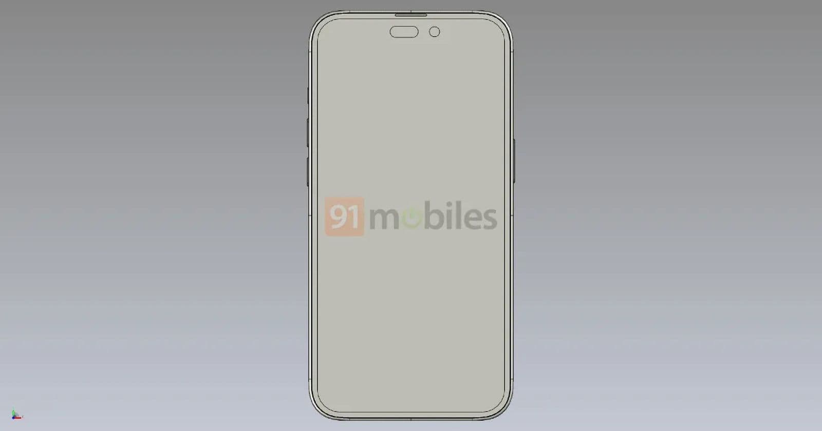 91Mobiles ปล่อยภาพ CAD ที่อ้างว่าเป็นดีซน์ตัวเครื่องของ iPhone 14 Pro ซึ่งเป็นดีไซน์ตัวเครื่องส่วนใหญ่เหมือนเดิม แต่มีบริเวณรอยบากเปลี่ยนไป