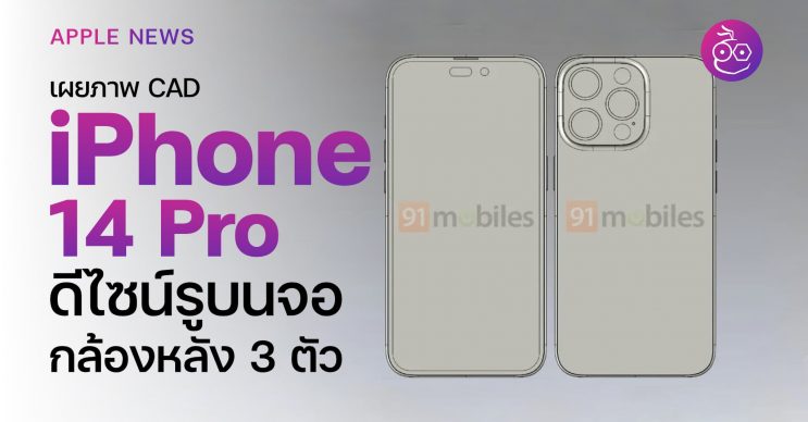 เผยภาพ CAD iPhone 14 Pro, ดีไซน์รูบนจอ กล้องหลัง 3 ตัวแบบนูนเหมือนเดิม!