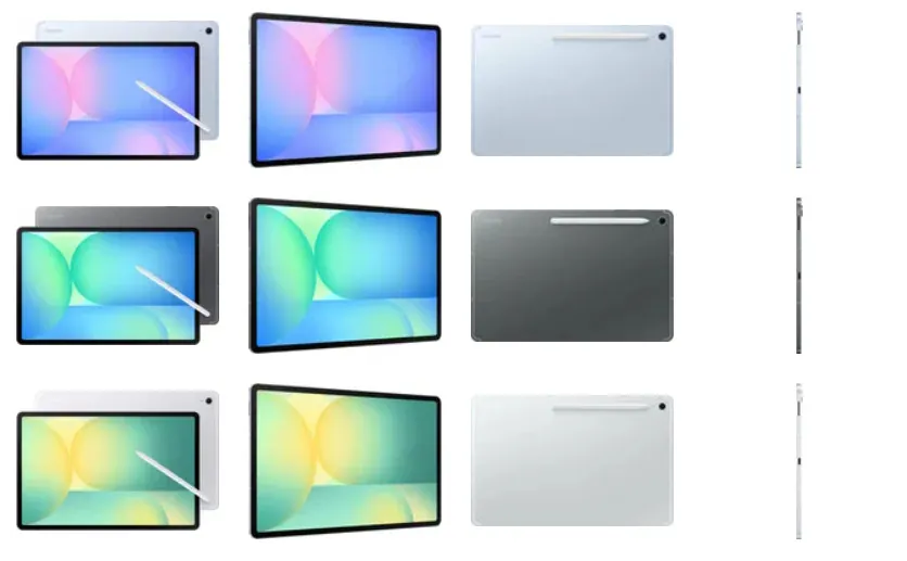 เผยภาพหลุด Galaxy Tab S10 FE และ Galaxy Tab S10 FE Plus แสดงให้เห็นดีไซน์ด้านหน้า ด้านหลัง และด้านข้างของตัวเครื่อง และยังทำให้เราเห็นว่า Galaxy Tab S10 FE จะมีให้เลือก 3 สี