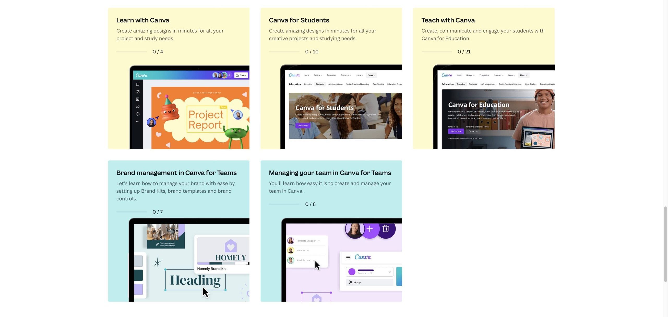 พอเปิดมาหน้าแรกจะเป็นหน้าท่ีรวมคอร์สต่าง ๆ ไม่ว่าจะเป็นคอร์สเรียน Canva เบื้องต้น หรือจะอัปสกิลการเรียนสำหรับนักเรียน และคอร์สอื่น ๆ อีกมากมาย