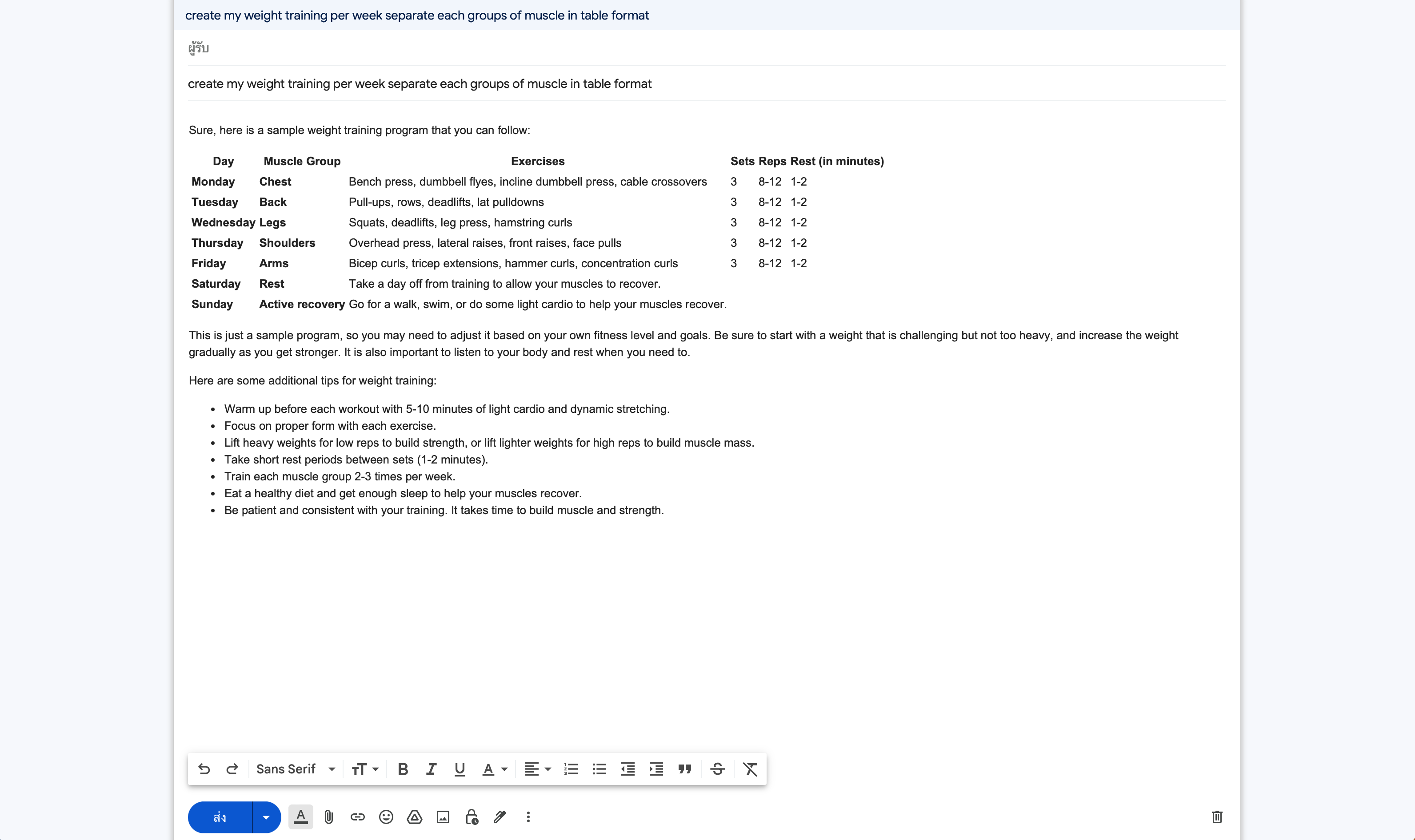 สำหรับ Bard ในเวอร์ชันล่าสุดที่ปล่อยให้ผู้ใช้งานทั่วไปใช้งานสามารถ Export ข้อความที่ Bard เขียนออกมาให้ในรูปแบบไฟล์ Document หรือ สามารถส่งเข้า Gmail ได้ด้วย