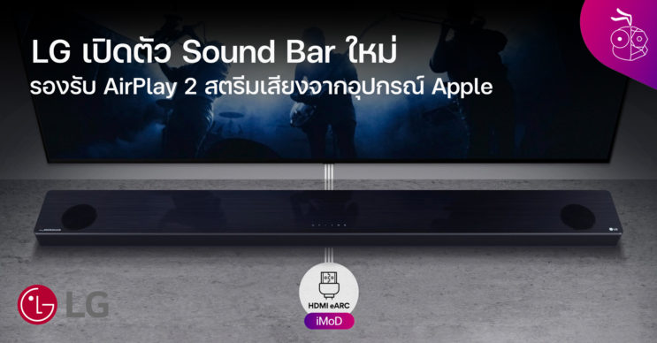 LG ประกาศเปิดตัวซาวด์บาร์ (Sound Bar) รุ่นใหม่ปี 2021 ที่มาพร้อมการรองรับคุณสมบัติ AirPlay 2 ของ Apple สามารถสตรีมเพลงจากอุปกรณ์ Apple ไปยังลำโพงซาวด์บาร์ได้