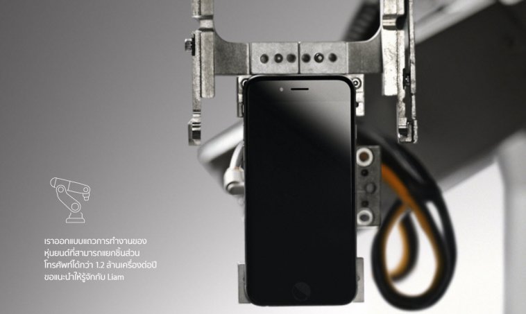 จริงๆแล้วเจ้าหุ่นยนต์ Liam ถูกนำมาเป็นส่วนหนึ่งในกระบวนการรีไซเคิล iPhone ตั้งแต่ปีที่แล้ว โดยหุ่นยนต์ตัวนี้มีทั้งหมด 29 แขน สามารถแยกชิ้นส่วน iPhone ได้ภายใน 11 วินาที โดย Mashable รายงานว่า หุ่นยนต์ตัวนี้สามารถแยกชิ้นส่วน iPhone 6 ได้ 1.2 ล้านเครื่องเมื่อปีที่แล้ว