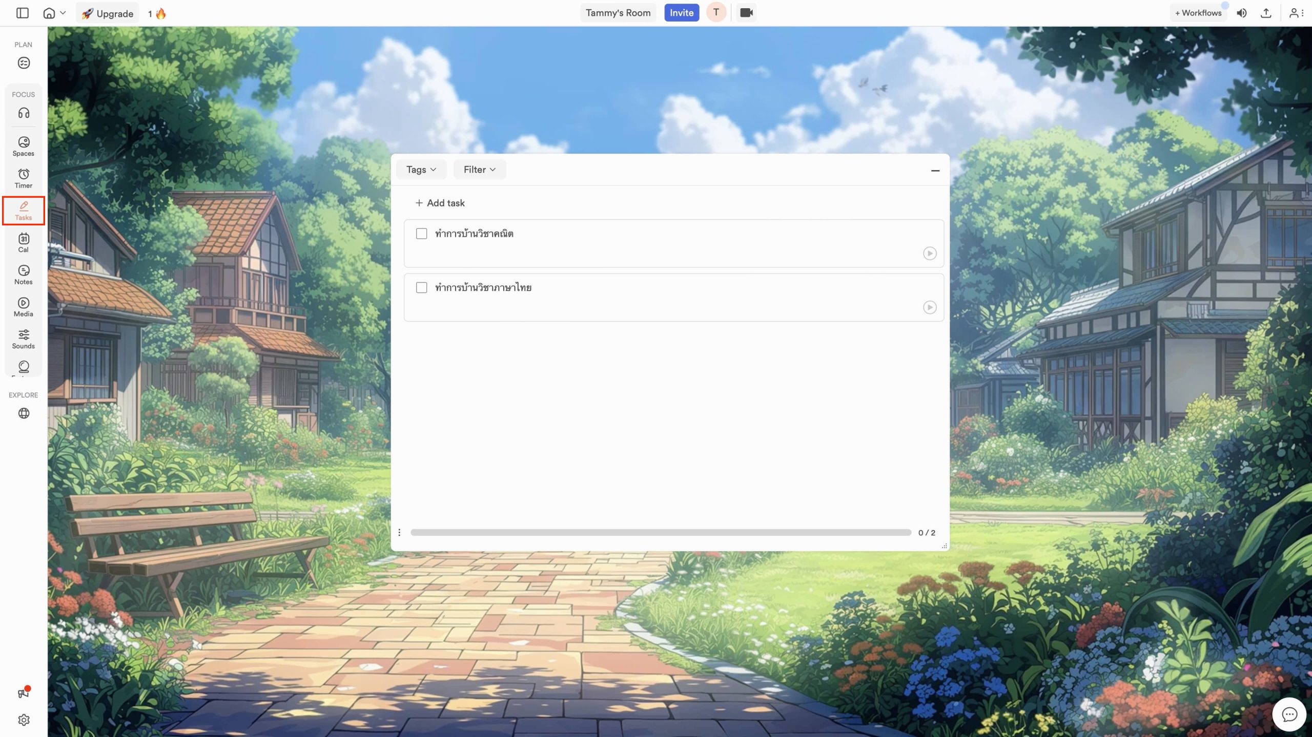 เรายังสามารถกด “Tasks” เพื่อตั้ง Tasks ที่เราต้องทำได้ด้วย เช่น วันนี้ต้องทำการบ้านวิชาคณิตและวิชาภาษาไทย