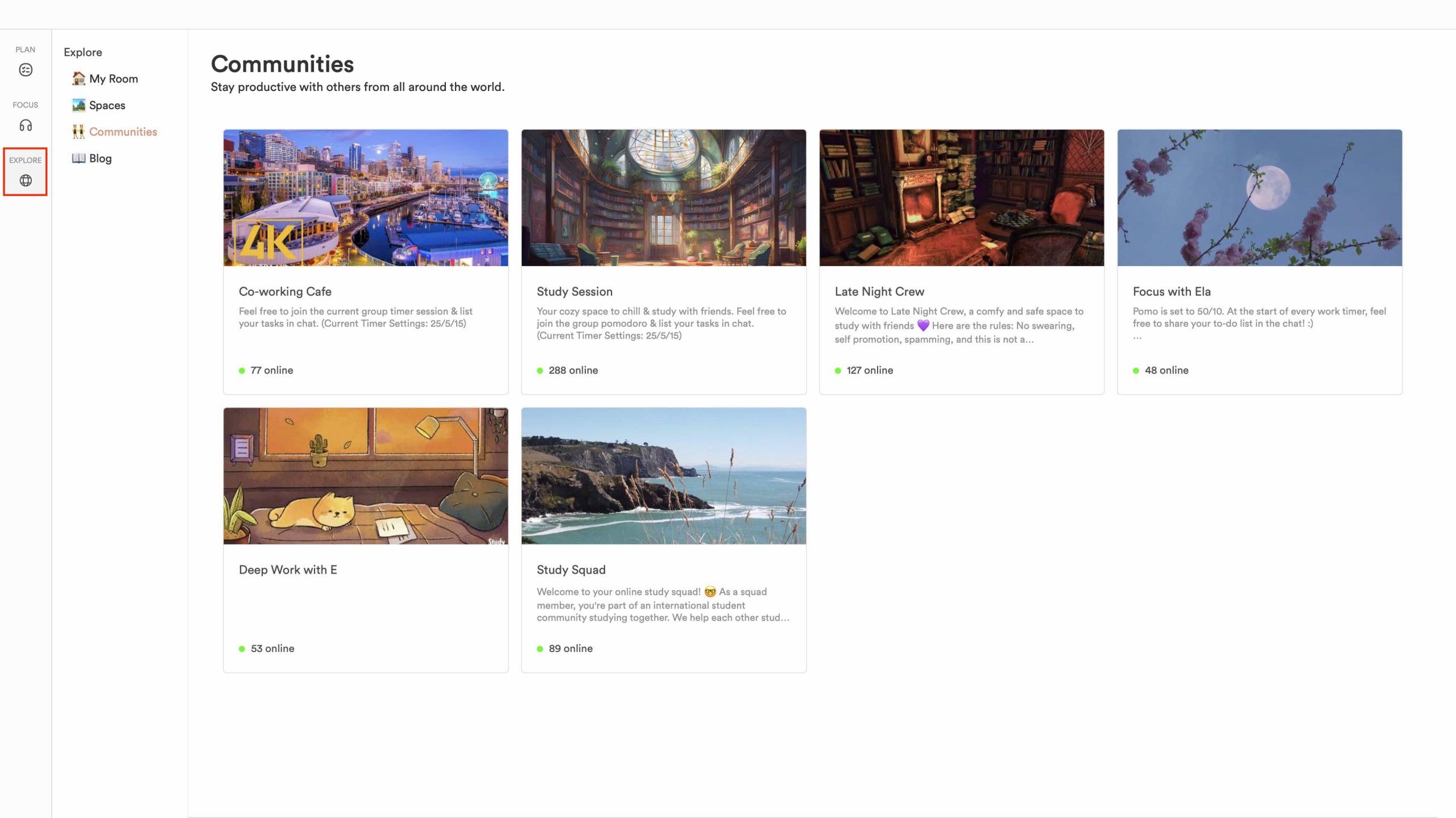 นอกจากนี้เรายังสามารถเข้าใช้งานเว็บไซต์ร่วมกับเพื่อนในโลกออนไลน์ได้ด้วย โดยกดไปที่ “Explore” จากนั้นก้เลือกห้องที่ต้องการได้เลย