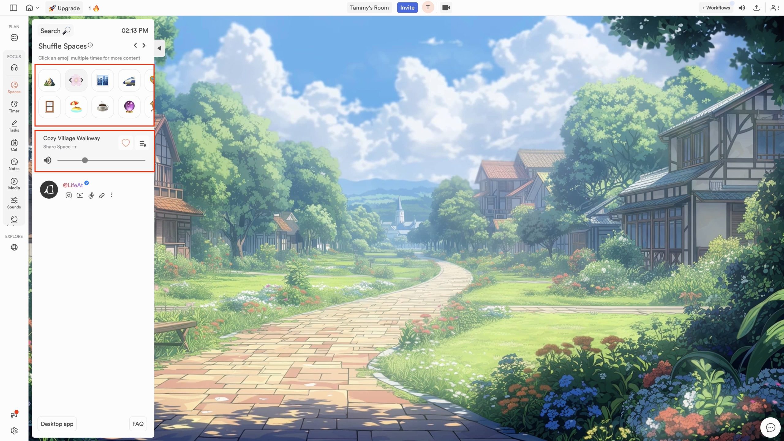 ถ้าเราเบื่อภาพที่เลือกมา เราสามารถกดเลือกรูปในแท็บ Shuffle Spaces เพื่อสุ่มภาพพร้อมเพลงมาให้ได้เลยนะ มีให้เลือกสุ่มหลายแบบแล้วแต่เราชอบเลย และเรายังปรับความดังของเสียงเพลงได้ หรือจะเพิ่มเพลงนี้เข้าเพลงโปรดก็ได้เหมือนกันนะ