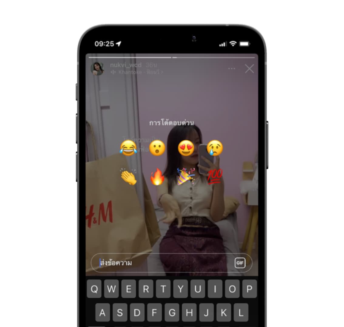 ส่วนการโต้ตอบด่วนที่เราใช้แสดงความรู้สึกในสตอรี่ยังคงมีเหมือนเดิม
