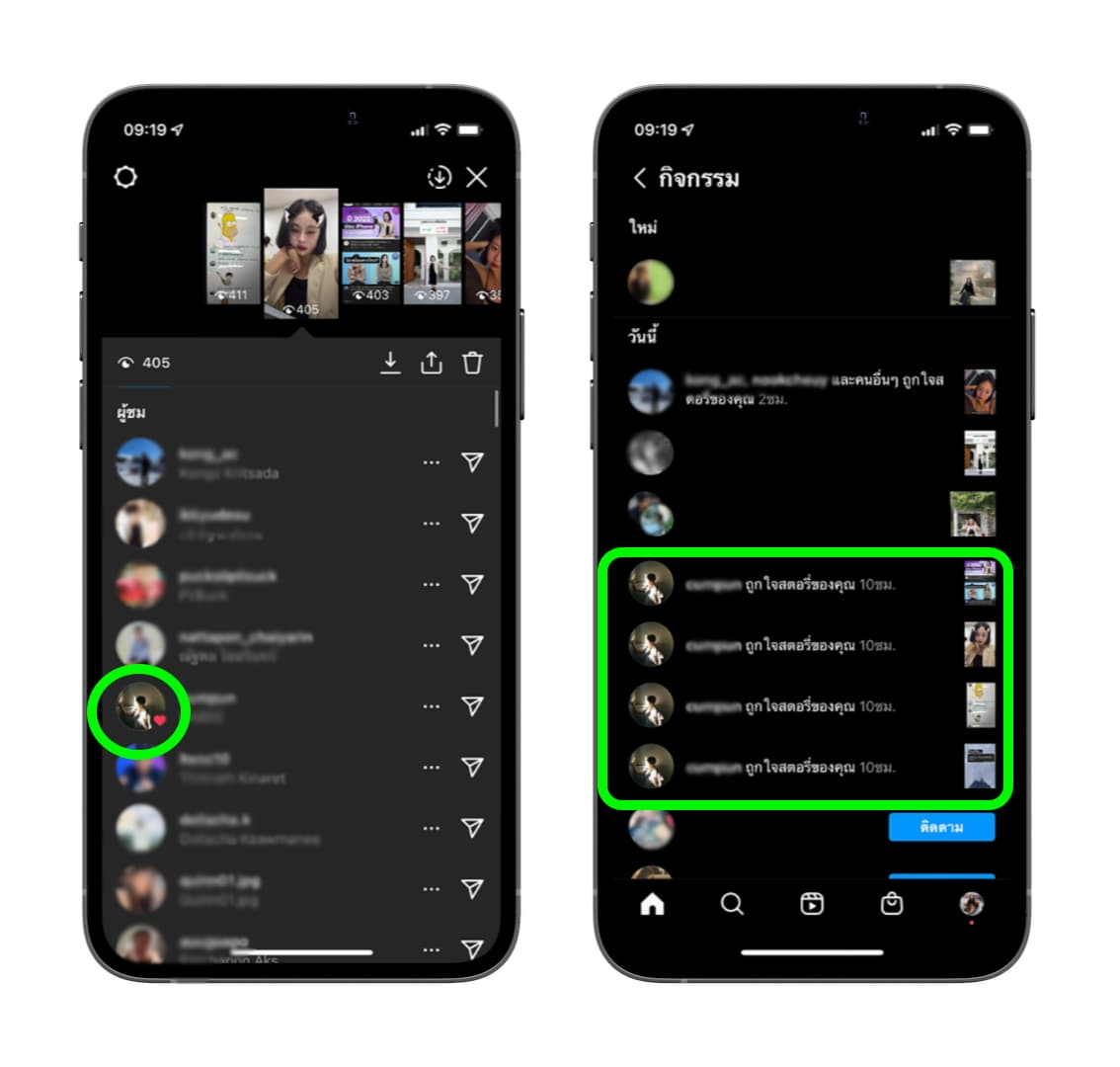 โดยเราสามารถดูได้ว่าใครมากดไลค์สตอรี่ของเราบ้าง ถ้าเรากดเข้าไปดูบริเวณจำนวนผู้เข้าชมสตอรี่ จะมีสัญลักษณ์รูปหัวใจขึ้นข้าง ๆ รูปโปร์ไฟล์ของคนที่กดถูกใจให้เรา และจะมีการแจ้งเตือนขึ้นมาที่เมนูกิจกรรม