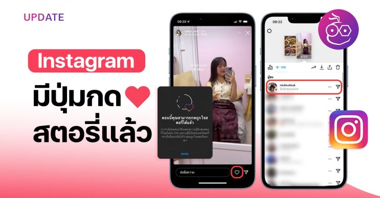 แอป Instagram เพิ่มปุ่มกดถูกใจสตอรี่ ฟีเจอร์ใหม่ที่นักพัฒนาบอกว่าจะนำมาใช้ และตอนนี้ก็เป็นตามนั้น เป็นปุ่มรูปหัวใจ สามารถดูได้ว่ามีใครมากดถูกใจสตอรี่เราบ้าง