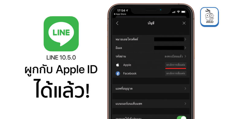 LINE ออกอัปเดตแอปเวอร์ชัน 10.5.0 สำหรับ iPhone, เชื่อมกับ Apple ID ได้แล้ว ใช้ Apple ID ย้ายบัญชี, ล็อคอินได้ และยกเลิกสร้างบัญชีด้วยการเข้าสู่ระบบด้วย Facebook