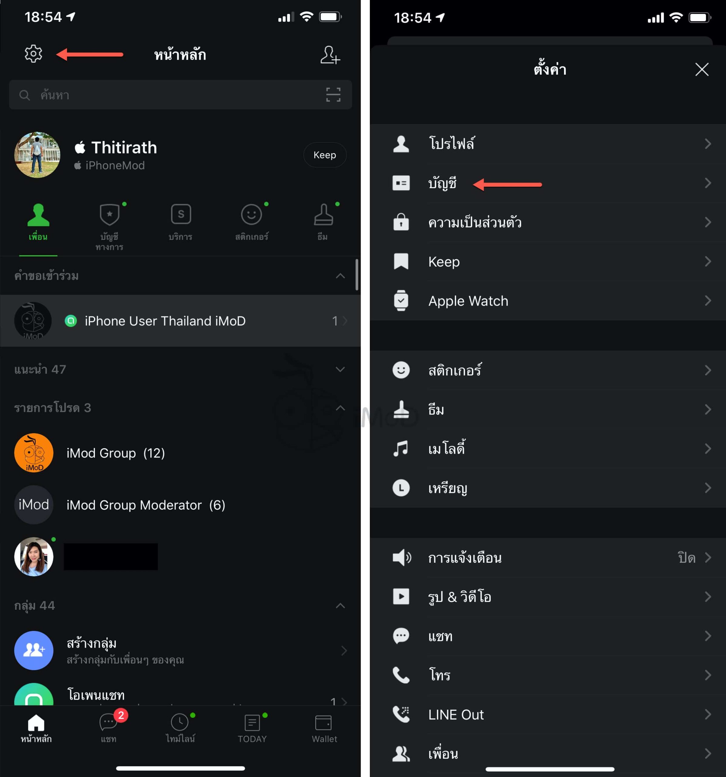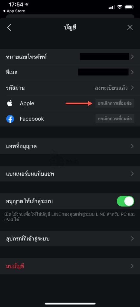 สำหรับการผูกบัญชี LINE กับ Apple ID ให้เข้าไปที่ แอป LINE > การตั้งค่า > บัญชี
