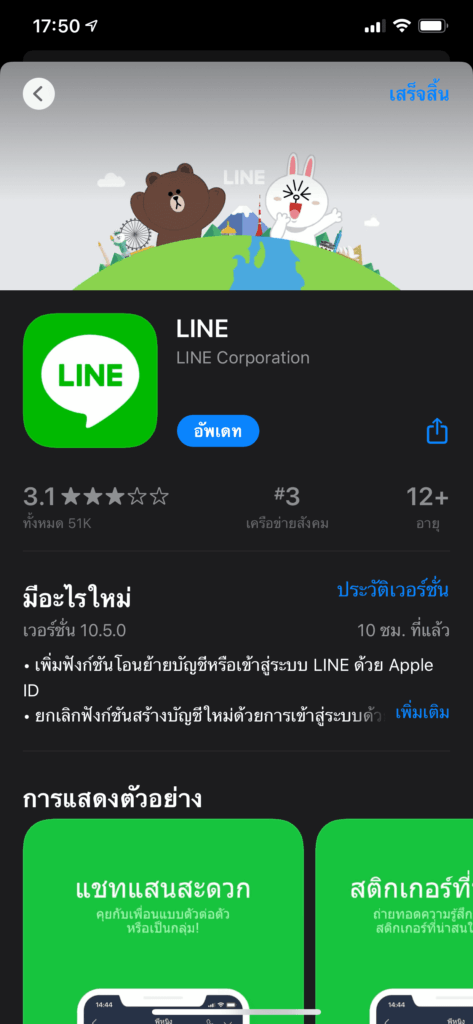ผู้ใช้สามารถอัปเดตแอป LINE เวอร์ชันล่าสุดได้ที่ App Store (ดาวน์โหลด)